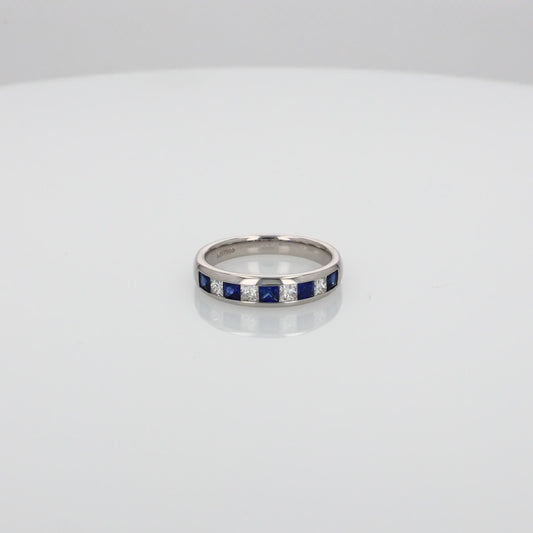 Platinum Alternating Princess Cut Sapphire and Diamond Band