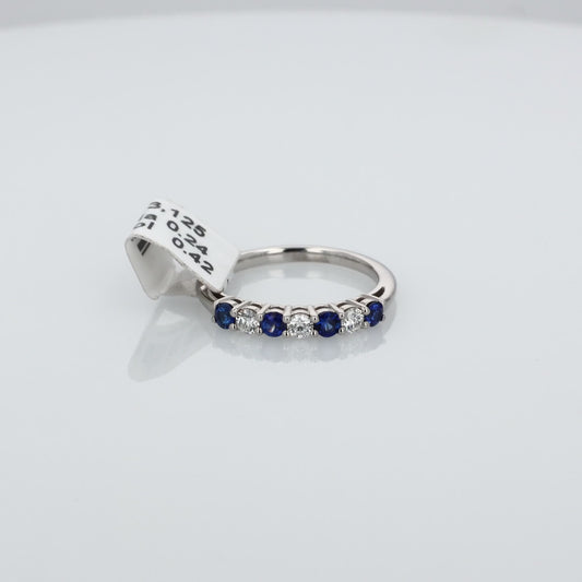 Platinum Alternating Round Blue Sapphire and Diamond Band