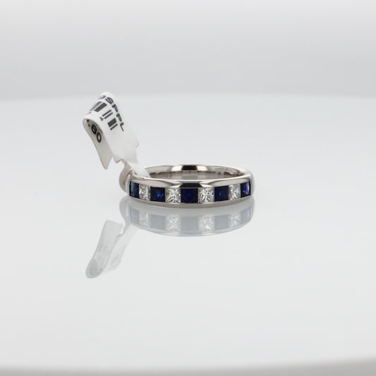 Platinum Alternating Square Blue Sapphire and Diamond Band