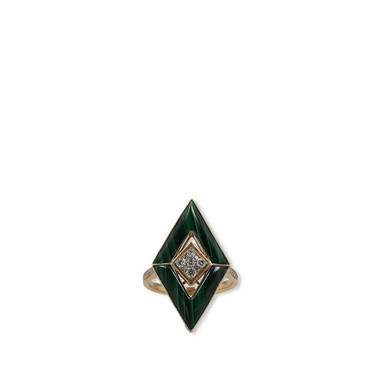 Estate 14k Yellow Gold V-Shaped Green Malachite and Diamond Ring