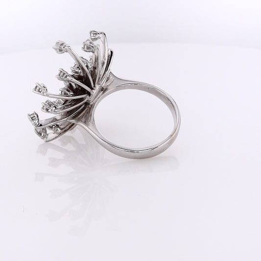 Estate 14 Karat White Gold Flower and Spray Design Diamond Ring