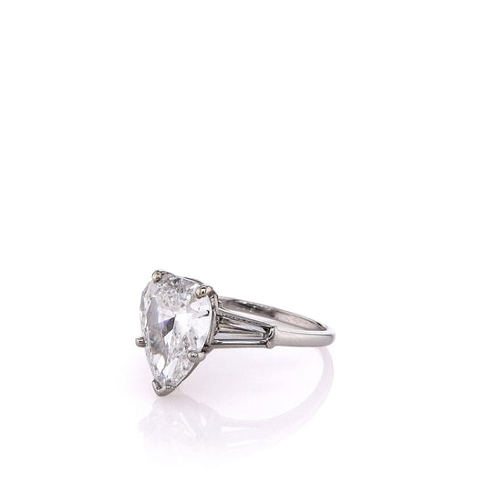 Estate Platinum Pear Shaped and Tapered Baguette Diamond Engagement Ring
