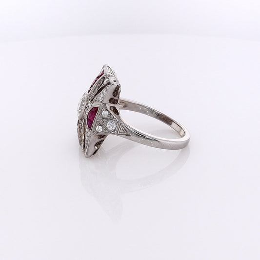 Estate 18 Karat White Gold Rectangular Design Ruby and Diamond Ring