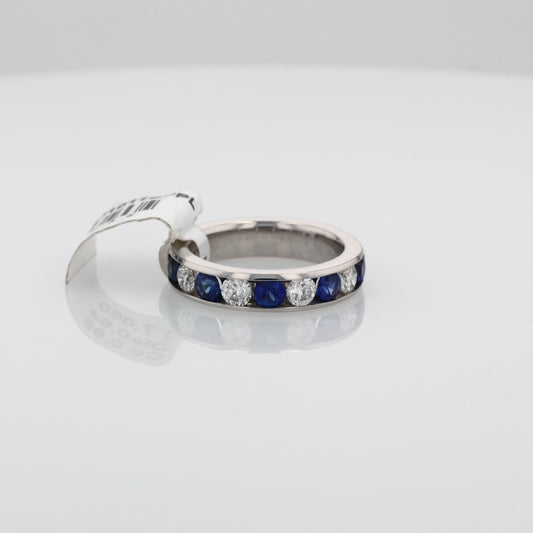 Platinum Alternating Round Blue Sapphire and Diamond Band