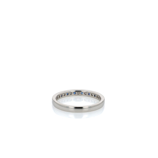 Platinum Alternating Round Sapphire and Diamond Halfway Wedding Band