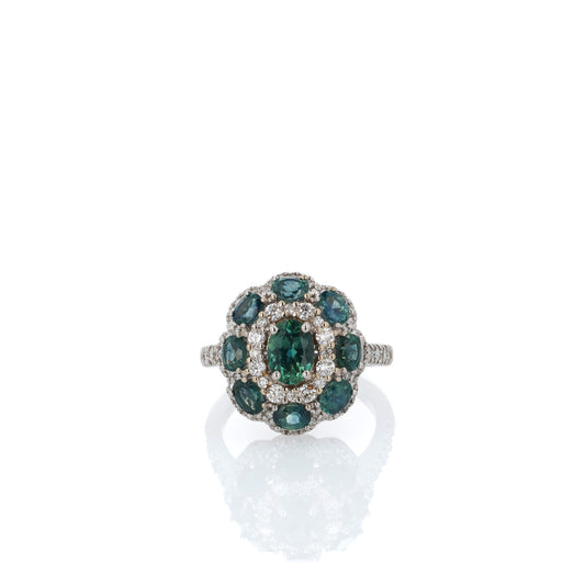 Estate 18 Karat White Gold Sapphire and Diamond Ring