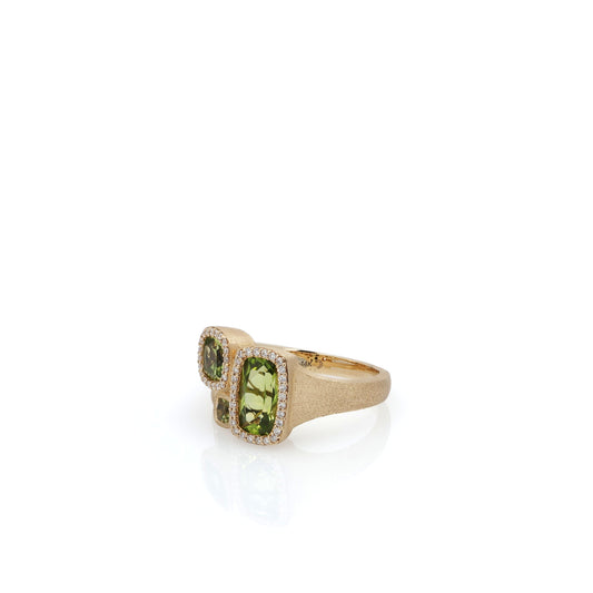 14k Yellow Gold Peridot and Diamond Halo Brushed Split Shank Ring