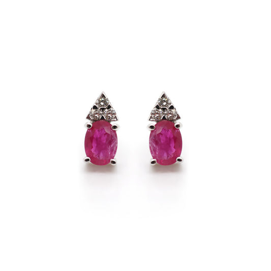 14k Gold Ruby and Diamond Halo Stud Earrings