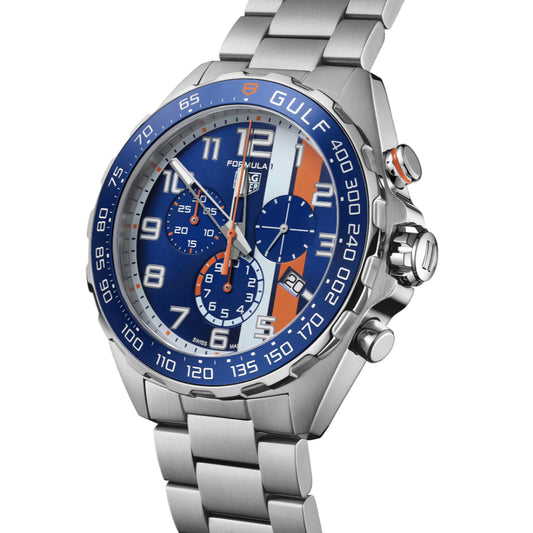 Tag Heuer Formula 1 X Gulf Quartz Chrono 43mm, Steel - Blue/Orange Dial