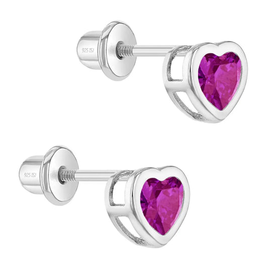 Children's Sterling Silver Hot Pink CZ Heart Stud Earrings