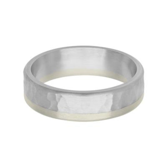 Men's Platinum & 18k Gold Hammered Finish Wedding Band