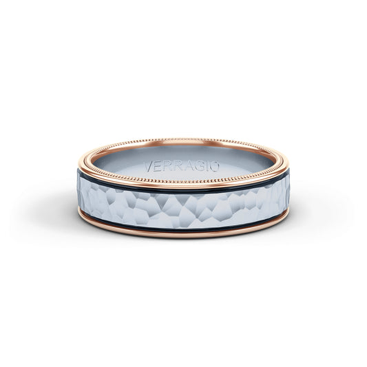 Verragio Men's 7mm Two-Tone Hammered Wedding Band