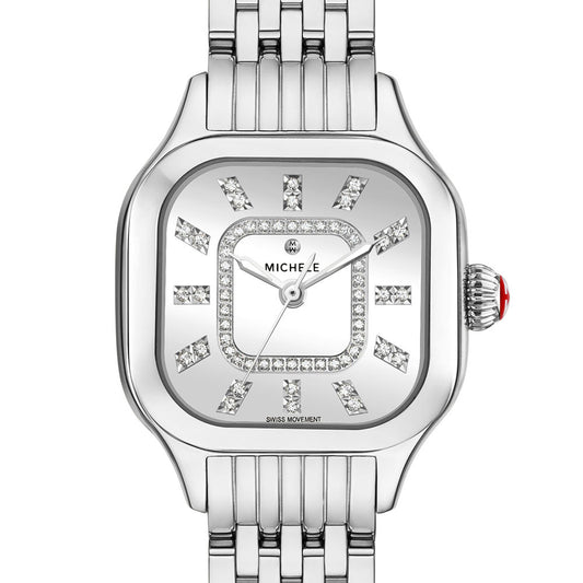 Michele Meggie High Shine Diamond Dial Stainless Steel Watch