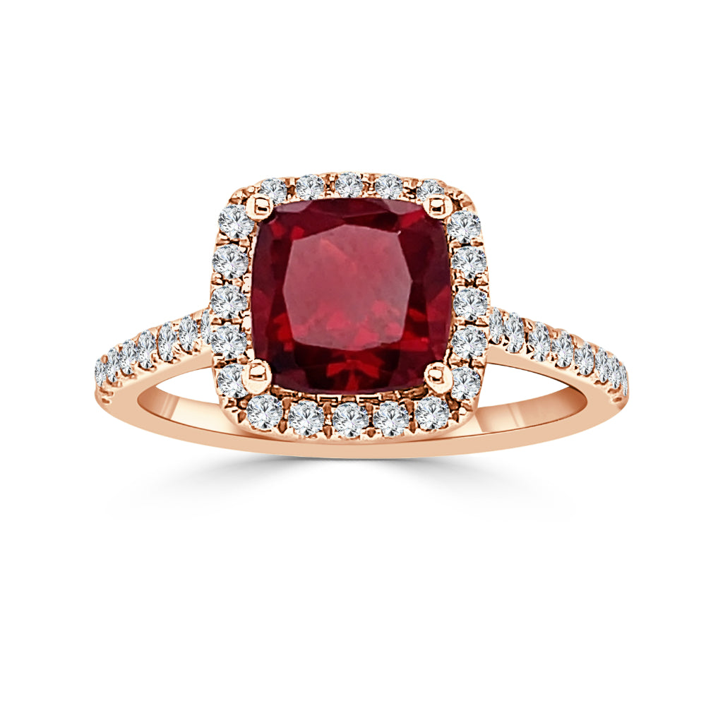 14k Gold 7mm Cushion Cut Garnet and Diamond Ring