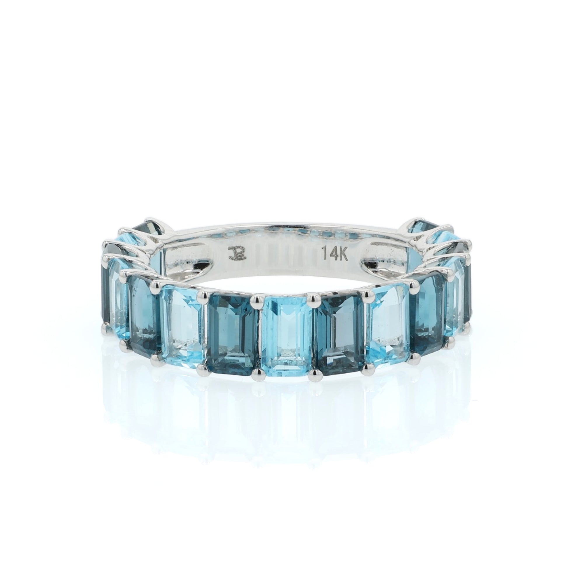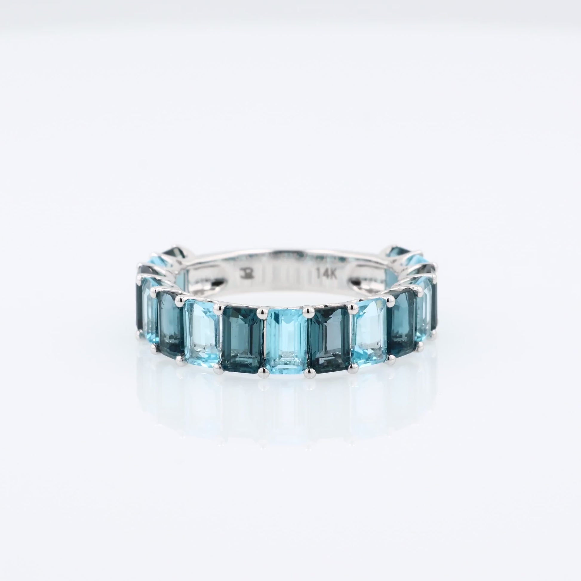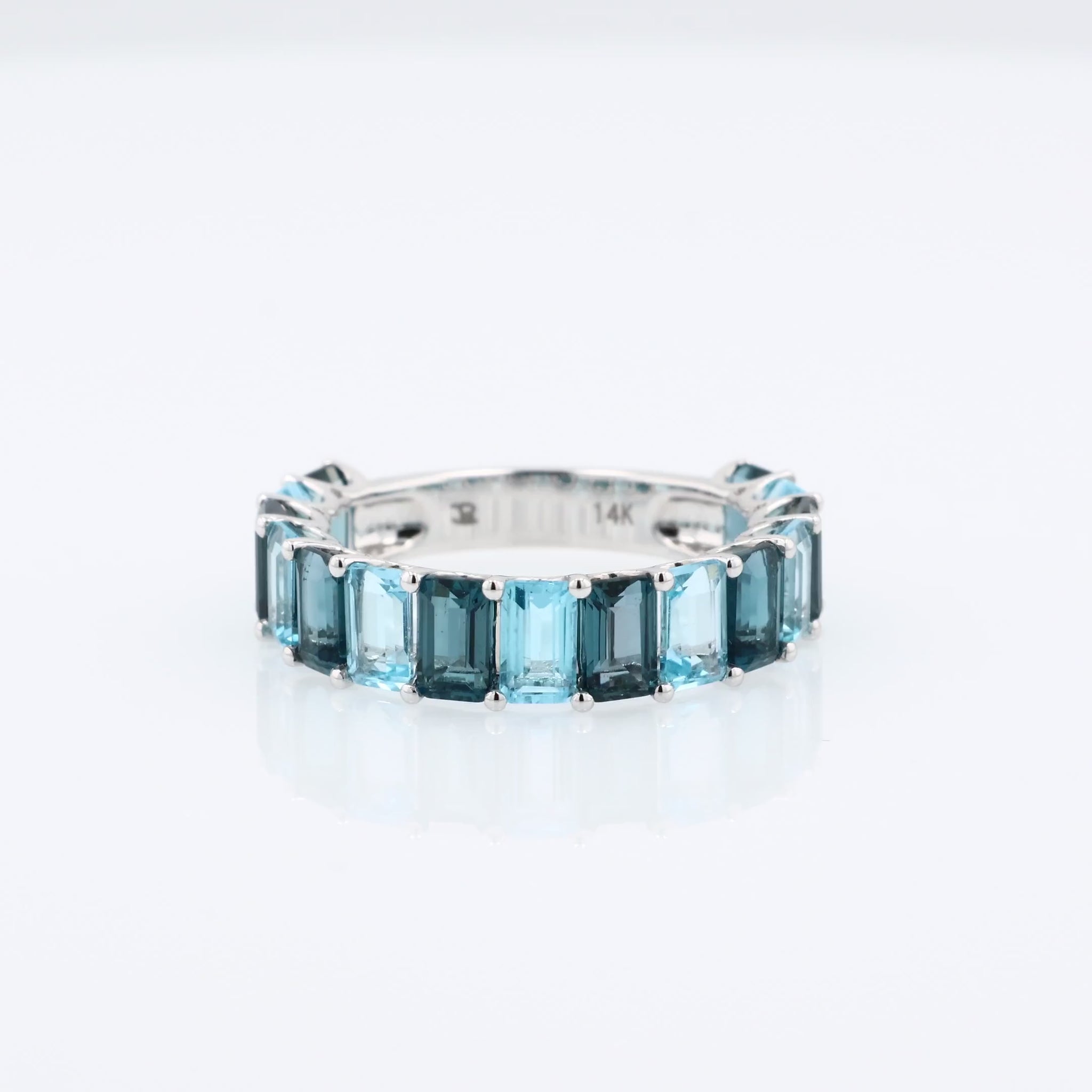 14k Gold Alternating Emerald Cut Blue Topaz 3/4 Way Band