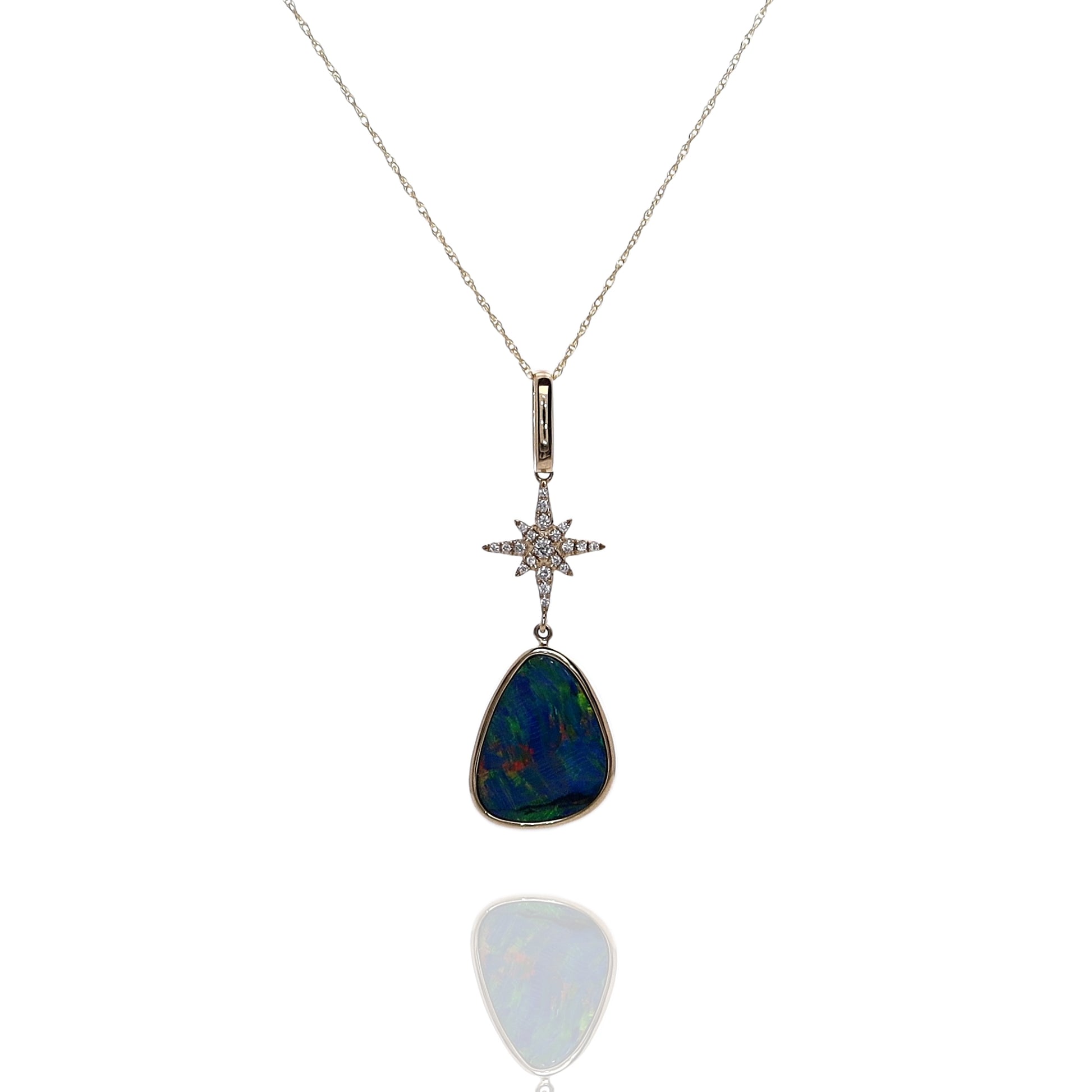 14k Gold Australian Opal and Diamond Star Pendant Necklace