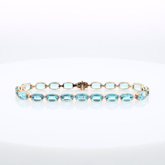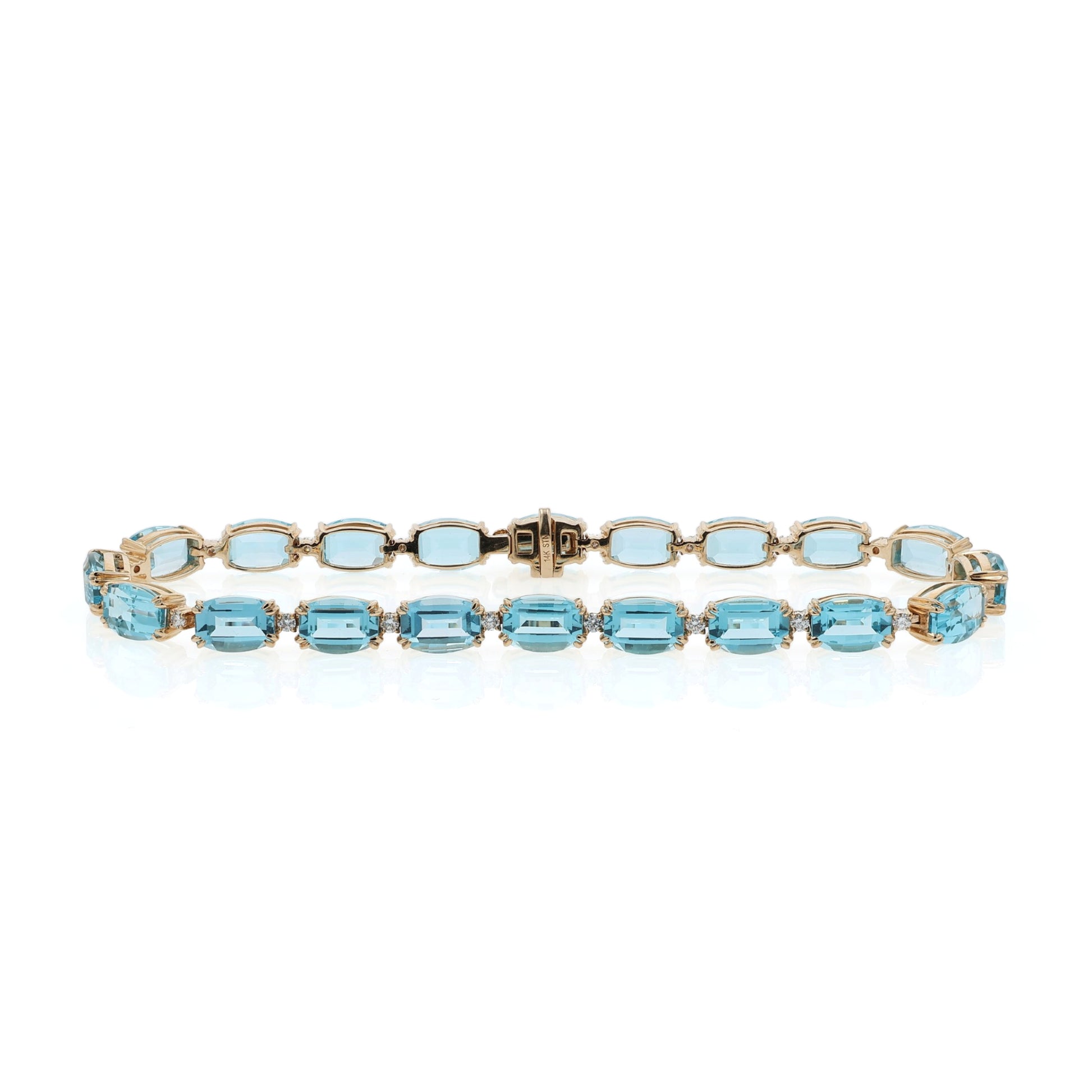 14k Gold Barrel Cut Blue Topaz and Diamond Bracelet