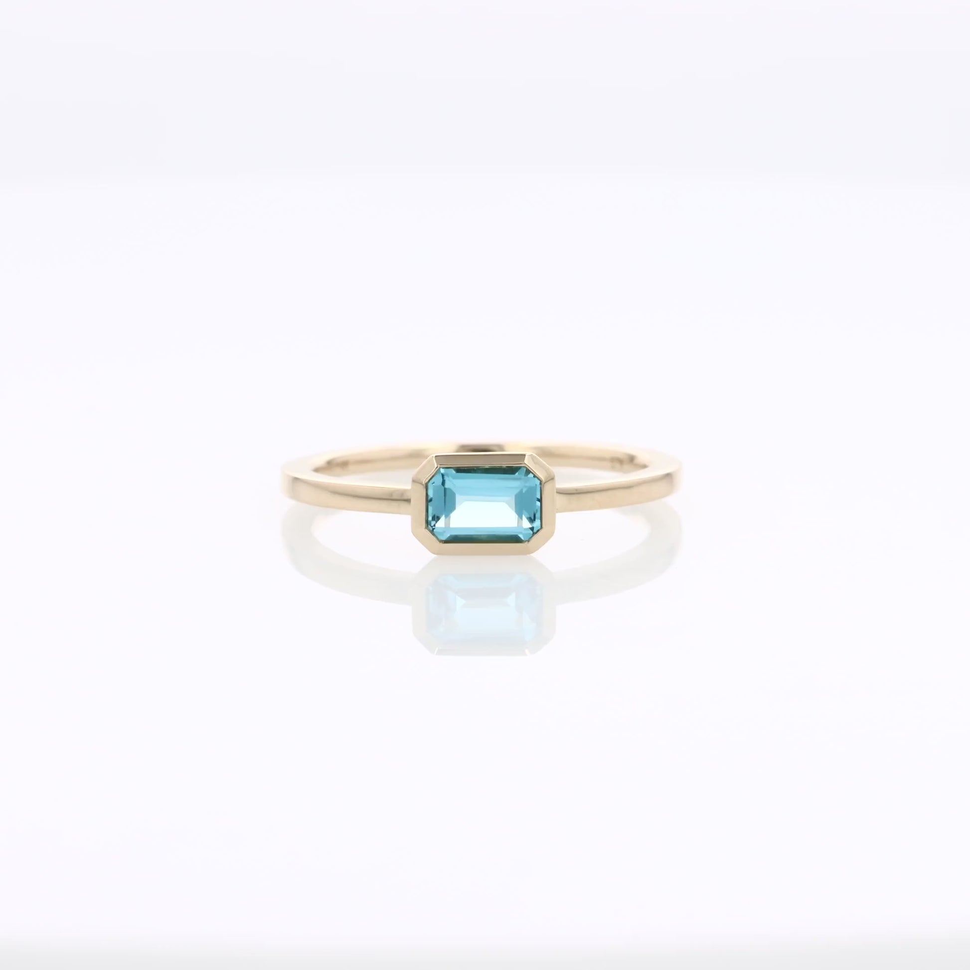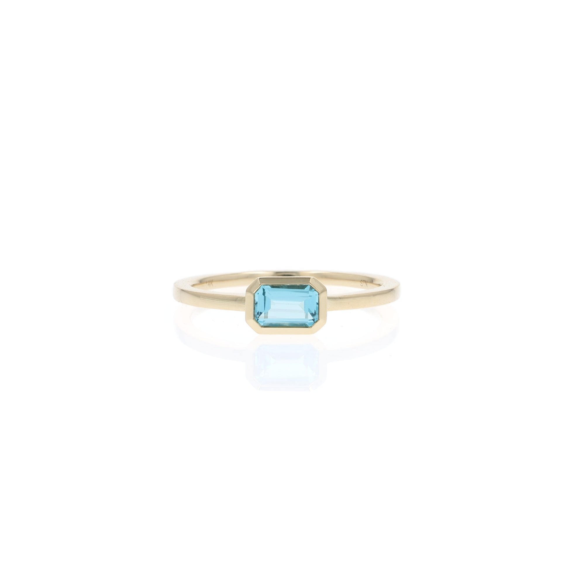 14k Gold Bezel-Set Emerald Cut Blue Topaz Ring