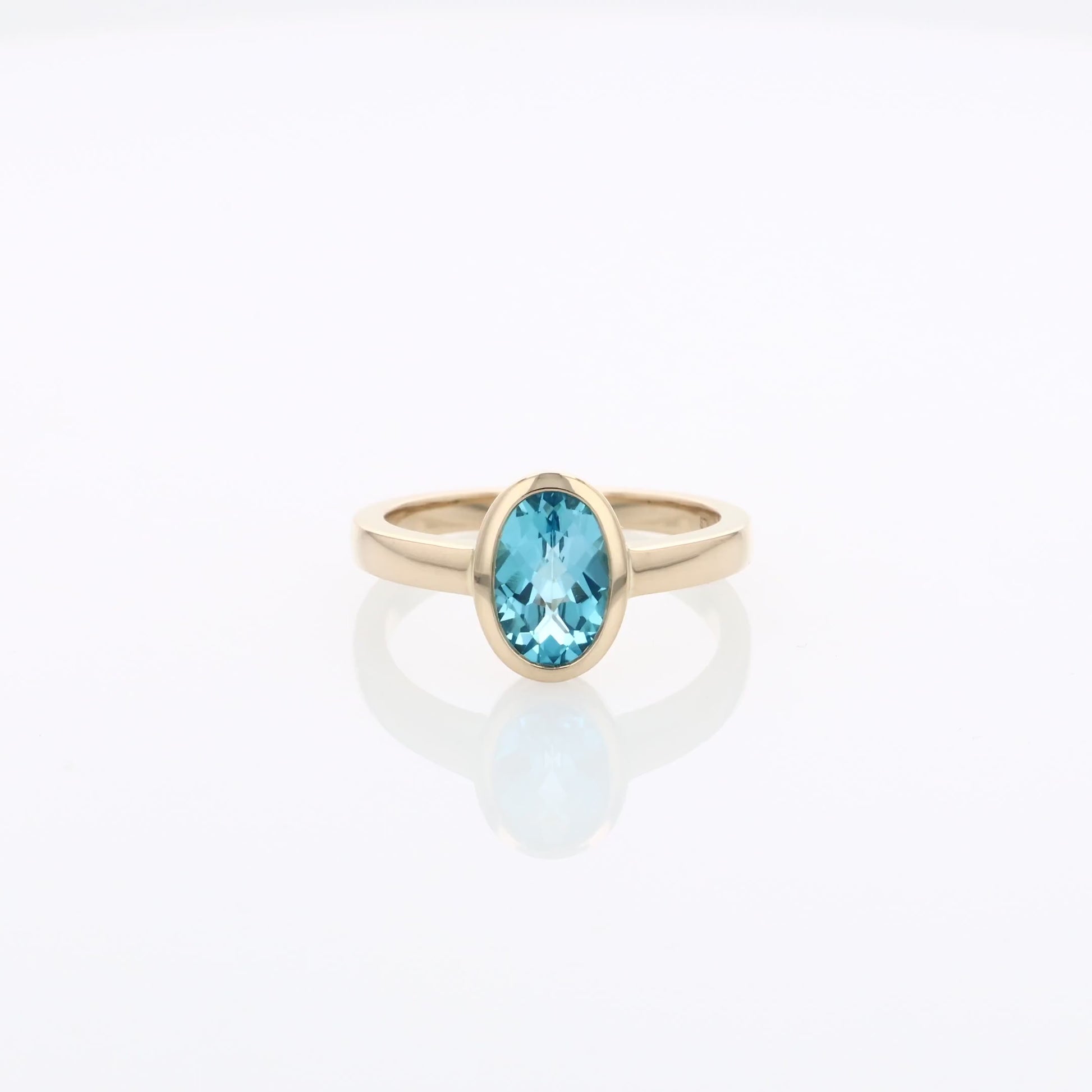 14k Gold Bezel-Set Oval Blue Topaz Ring