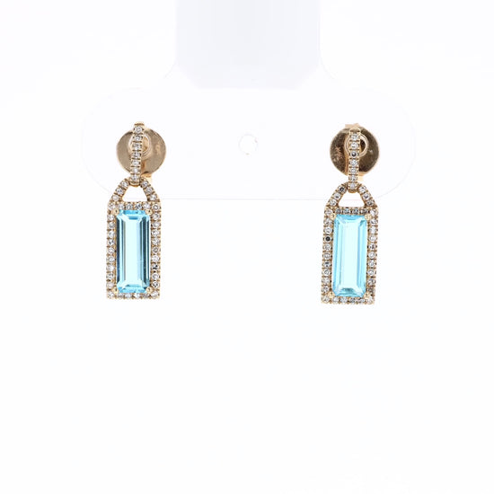 14k Gold Blue Topaz and Diamond Halo Drop Earrings