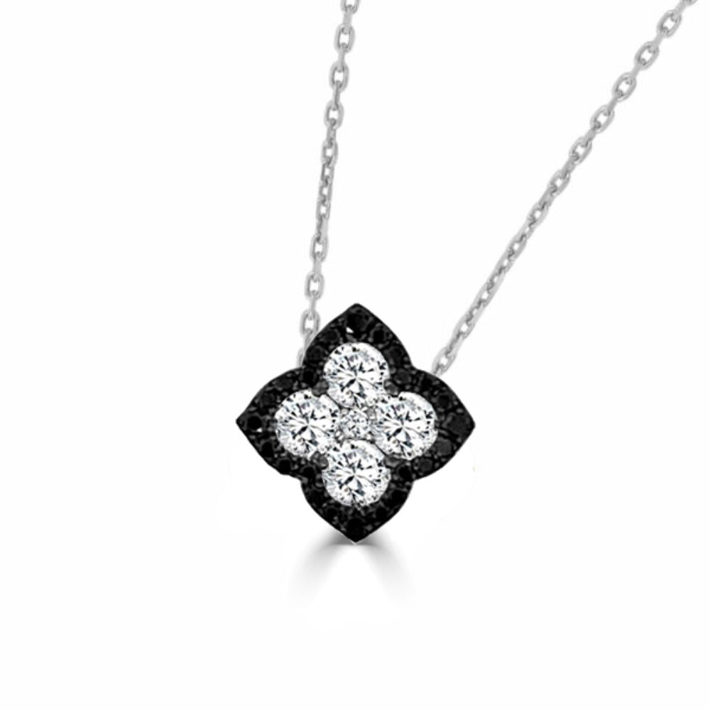 Fleur D’Amour Black & White Diamond Pendant With Chain, 0.35 Ct, Approximately 10 MM