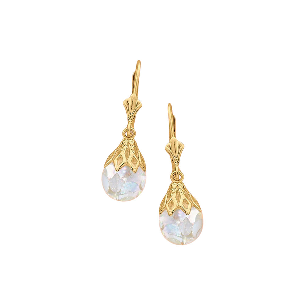 "Floating opal" (8mm)  drop in 14k gold fancy cap setting
