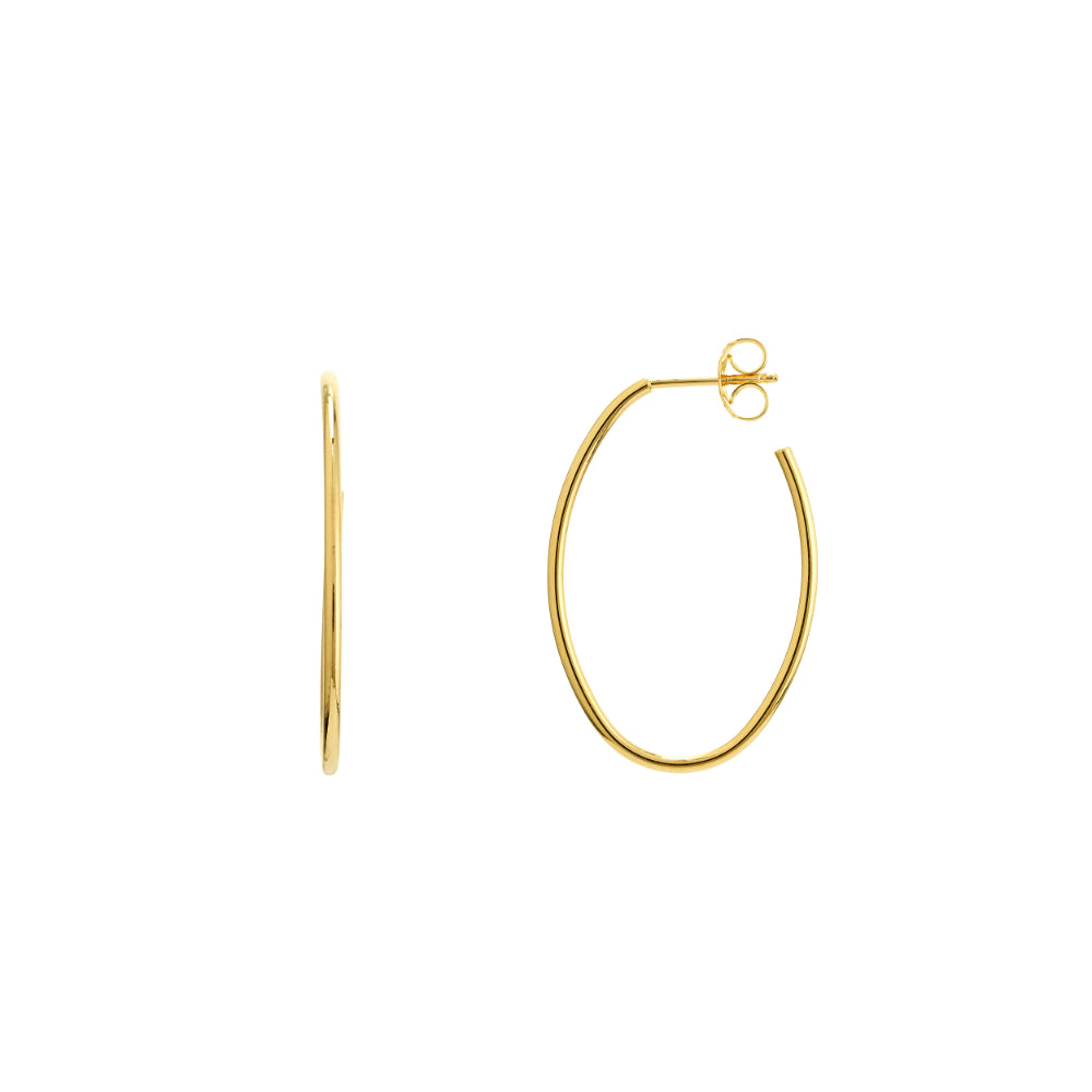 The oval hoop earring is an extraordinary take on the classic hoop earring. The oval hoop perfectly pairs with any outfit.