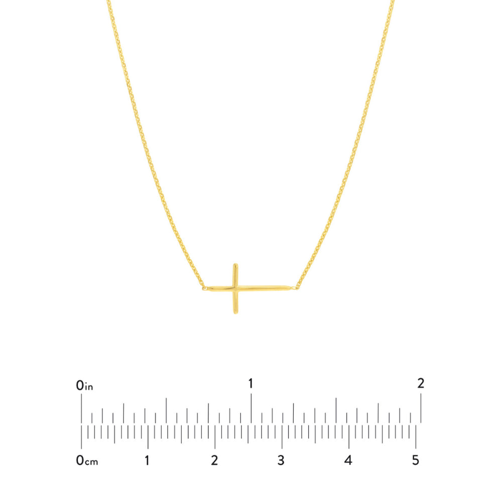 Show off your faith with dainty fashion jewelry. This 14K gold sideways mini cross necklace adds a graceful element to any neckline.