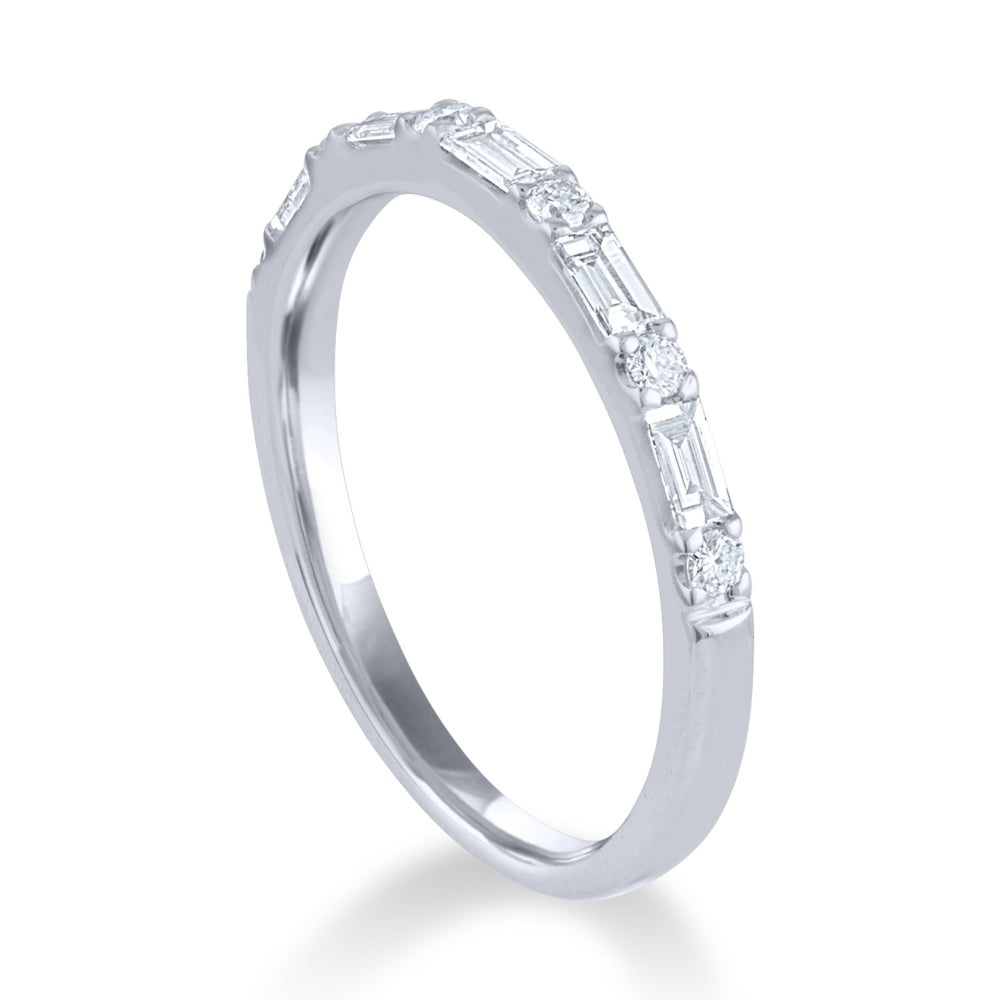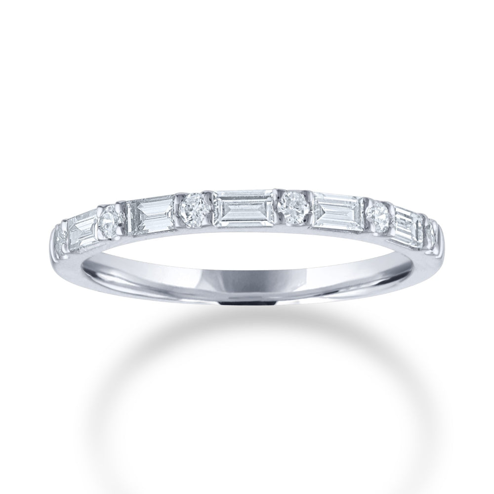 14k Round Diamond and Baguette Wedding Band