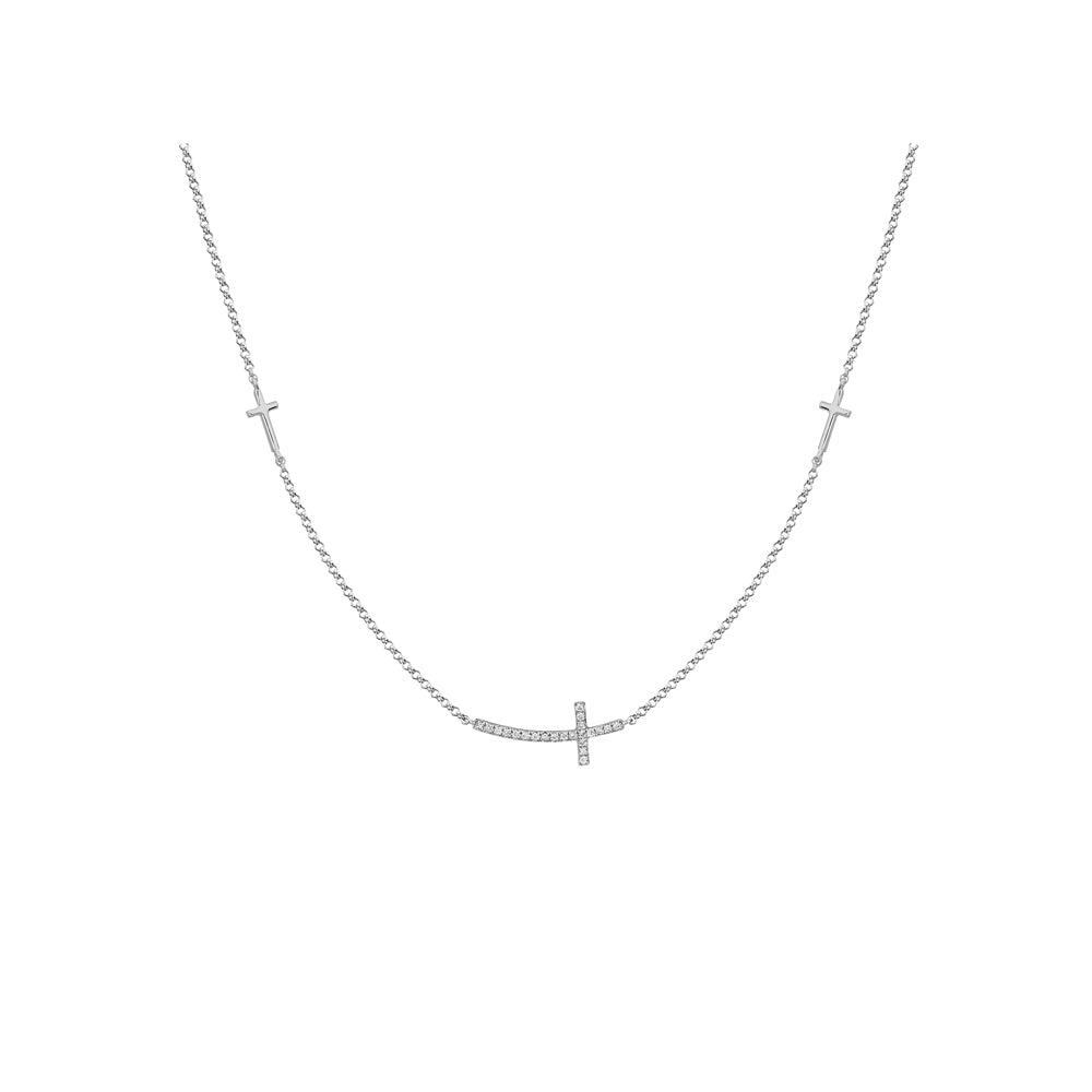 14k Gold Sideways Diamond Cross Necklace