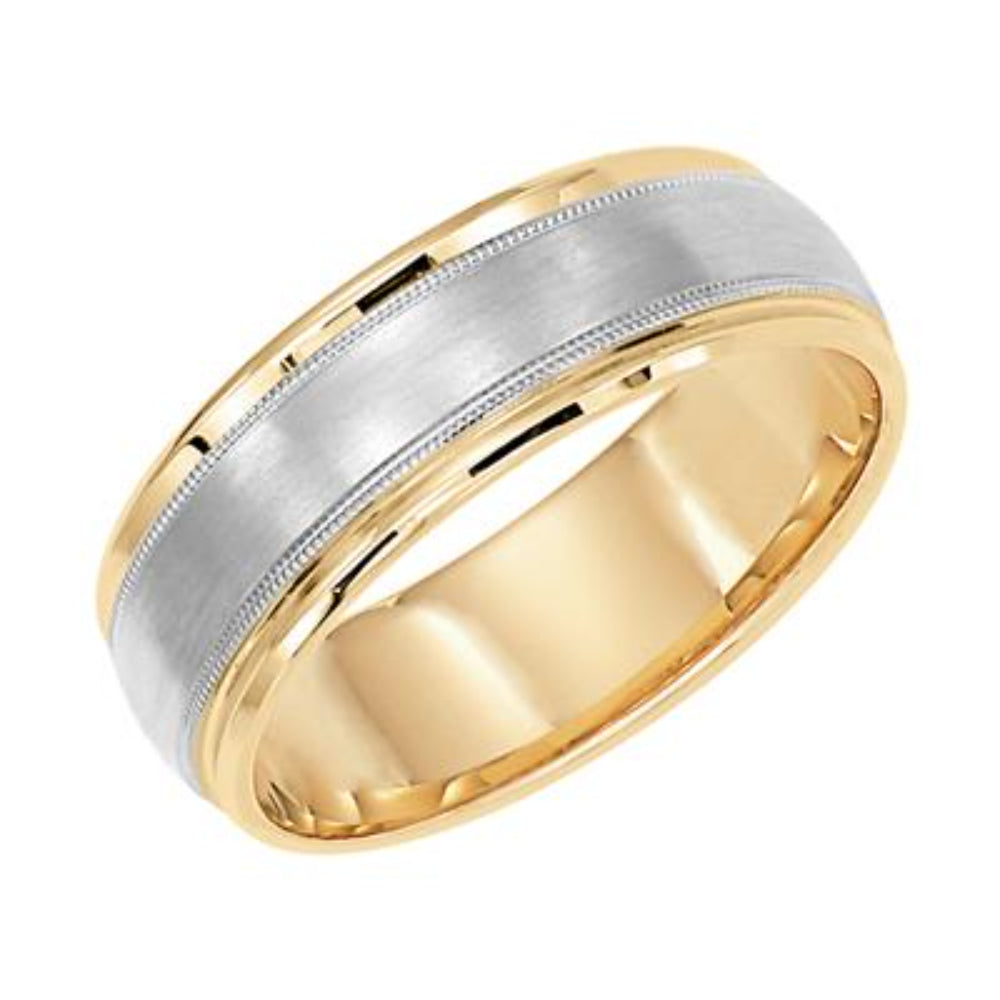 14k Two-Tone Dome Round Edge Carved Milgrain Men's Wedding Band