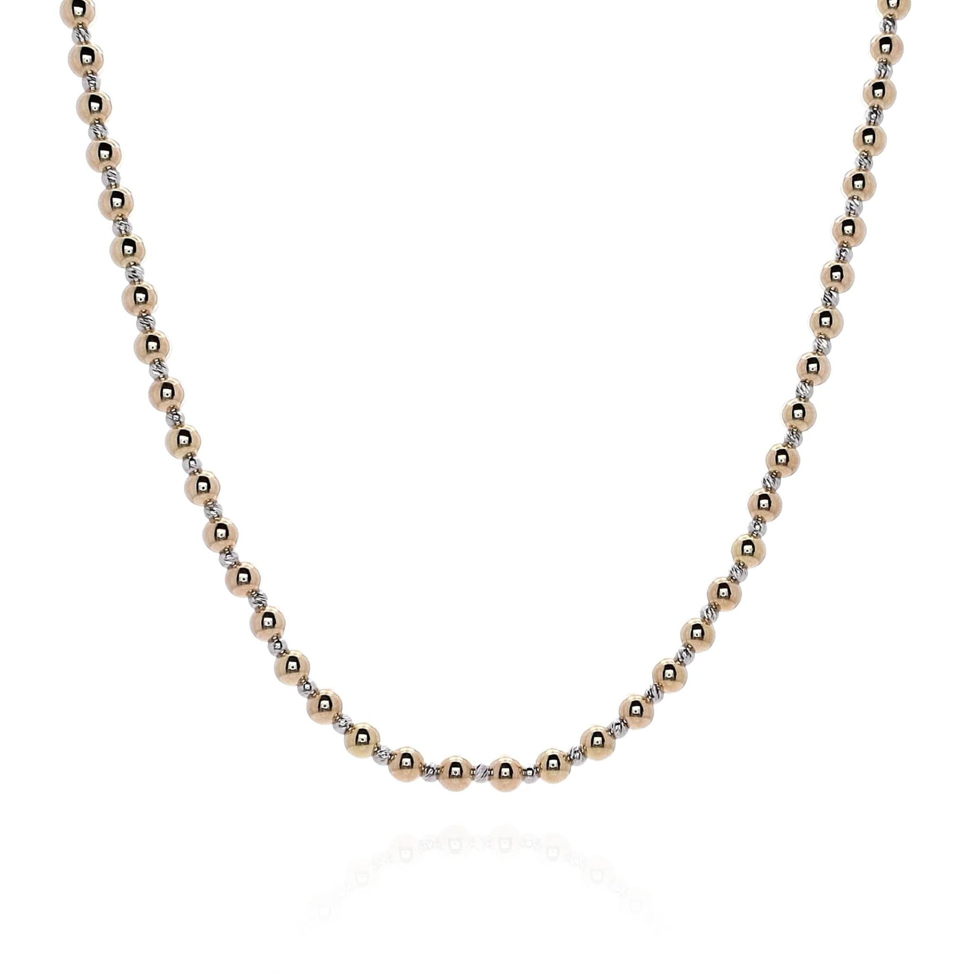14k Two-Tone Polished and Diamond-Cut Beaded Chain Necklace