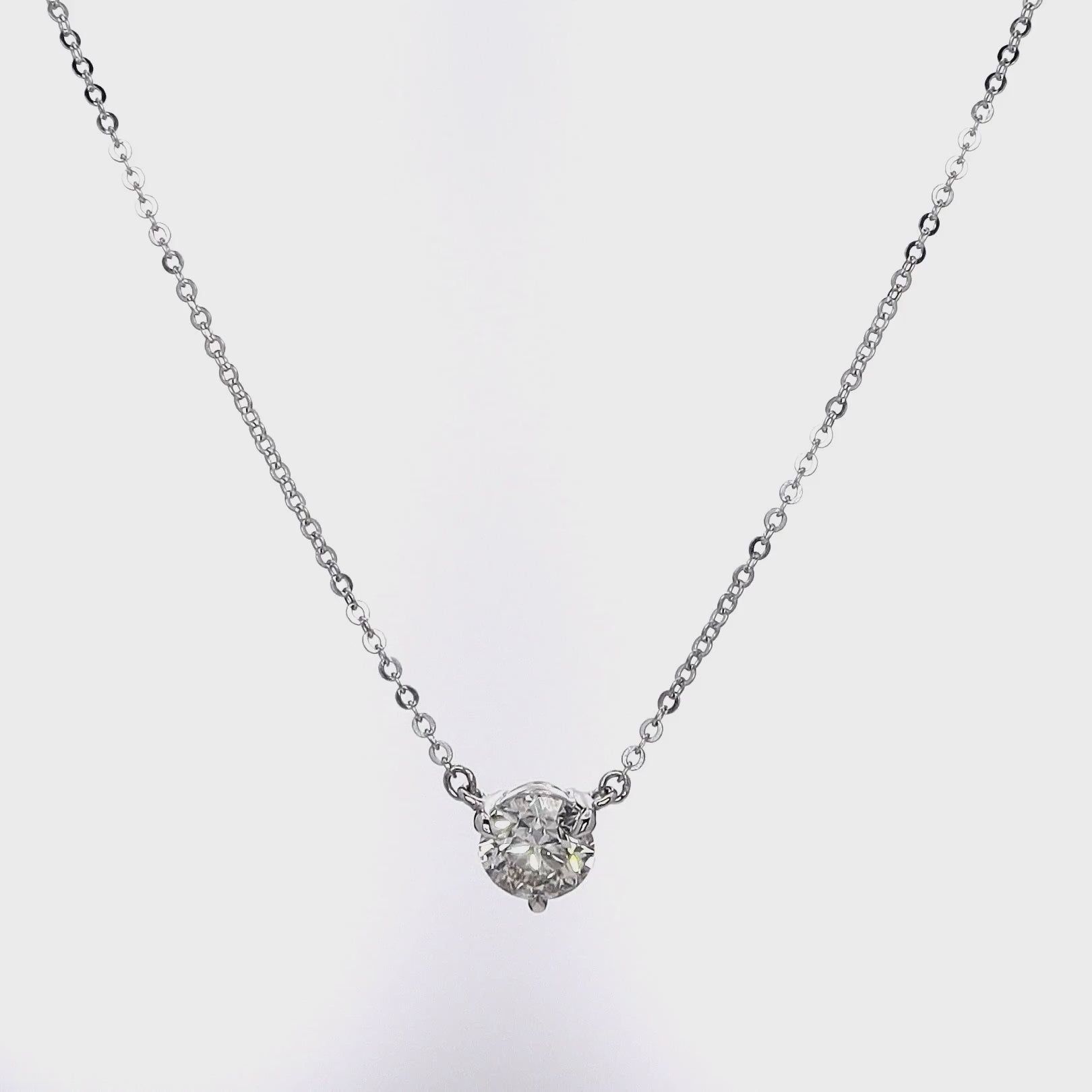 14k White Gold 1.13ct Diamond Solitaire Pendant Necklace