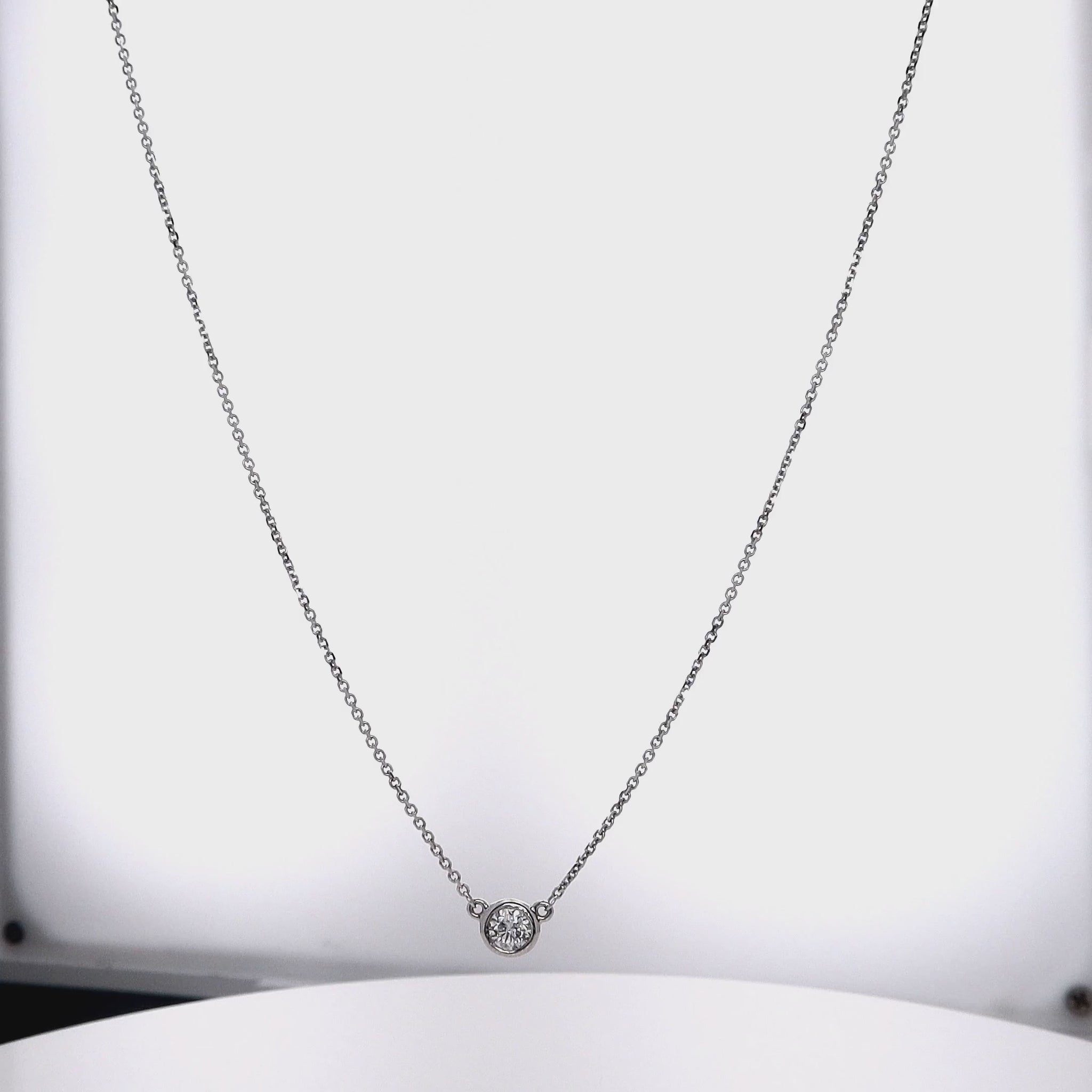 14k White Gold 18" Bezel-Set Diamond Solitaire Pendant