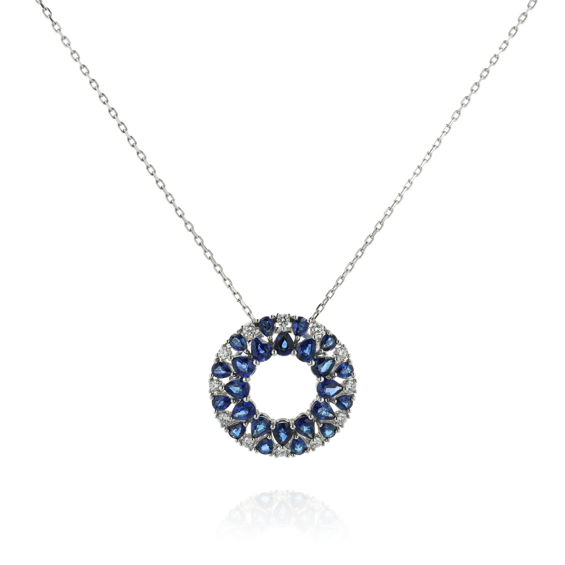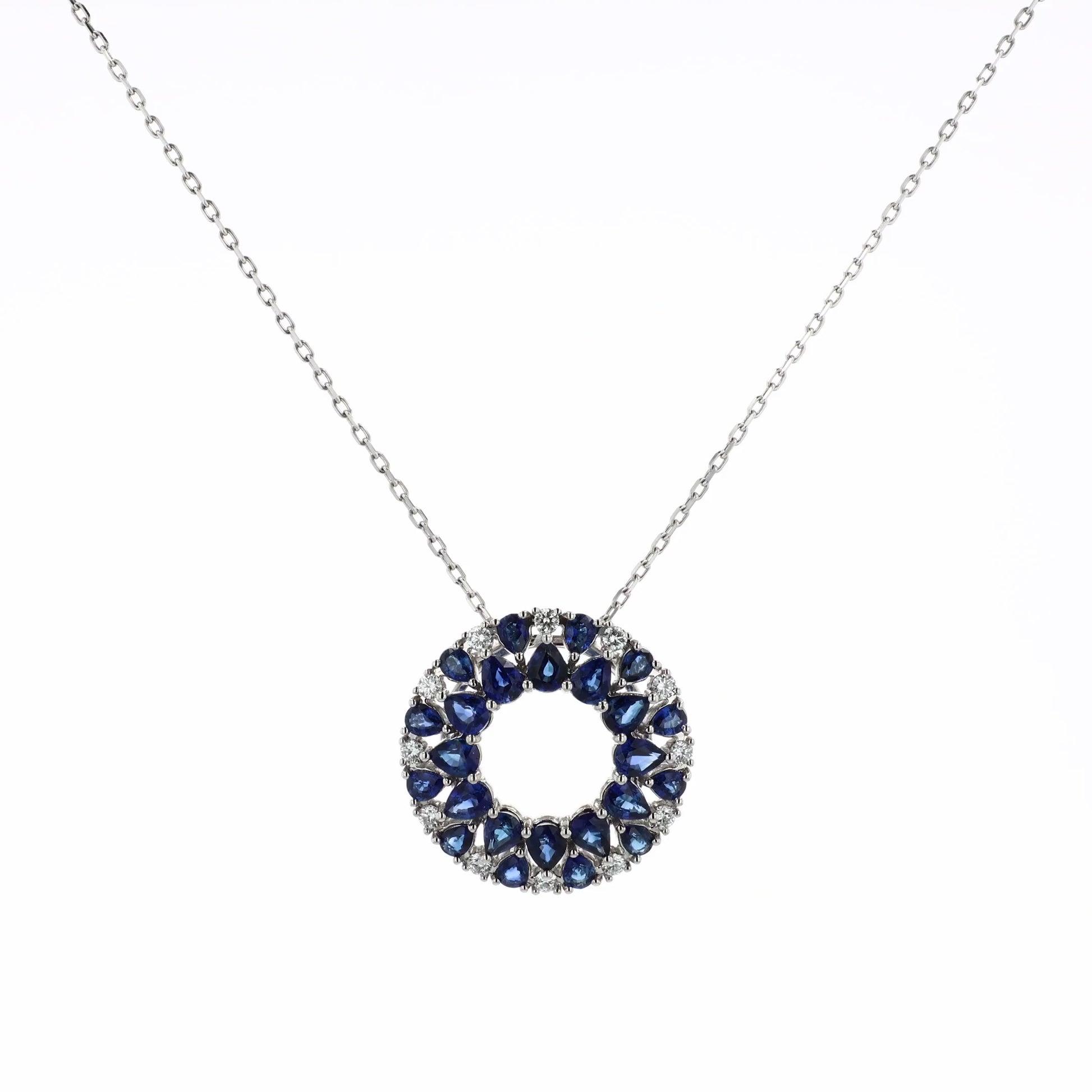 14k White Gold 18" Open Circle Sapphire and Diamond Pendant Necklace