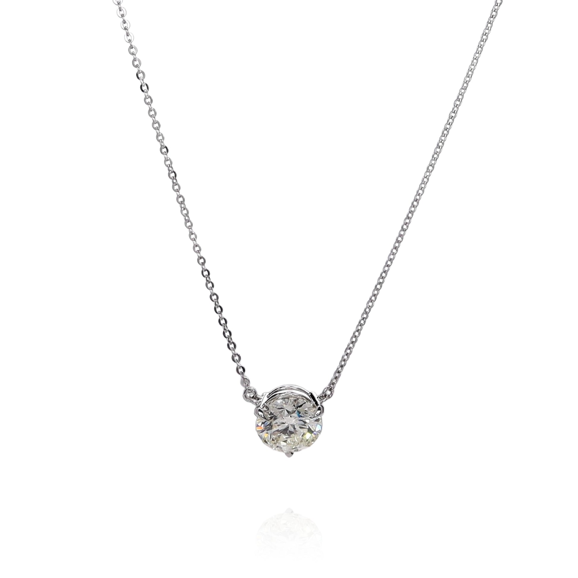 14k White Gold 2.81ct Diamond Solitaire Pendant Necklace
