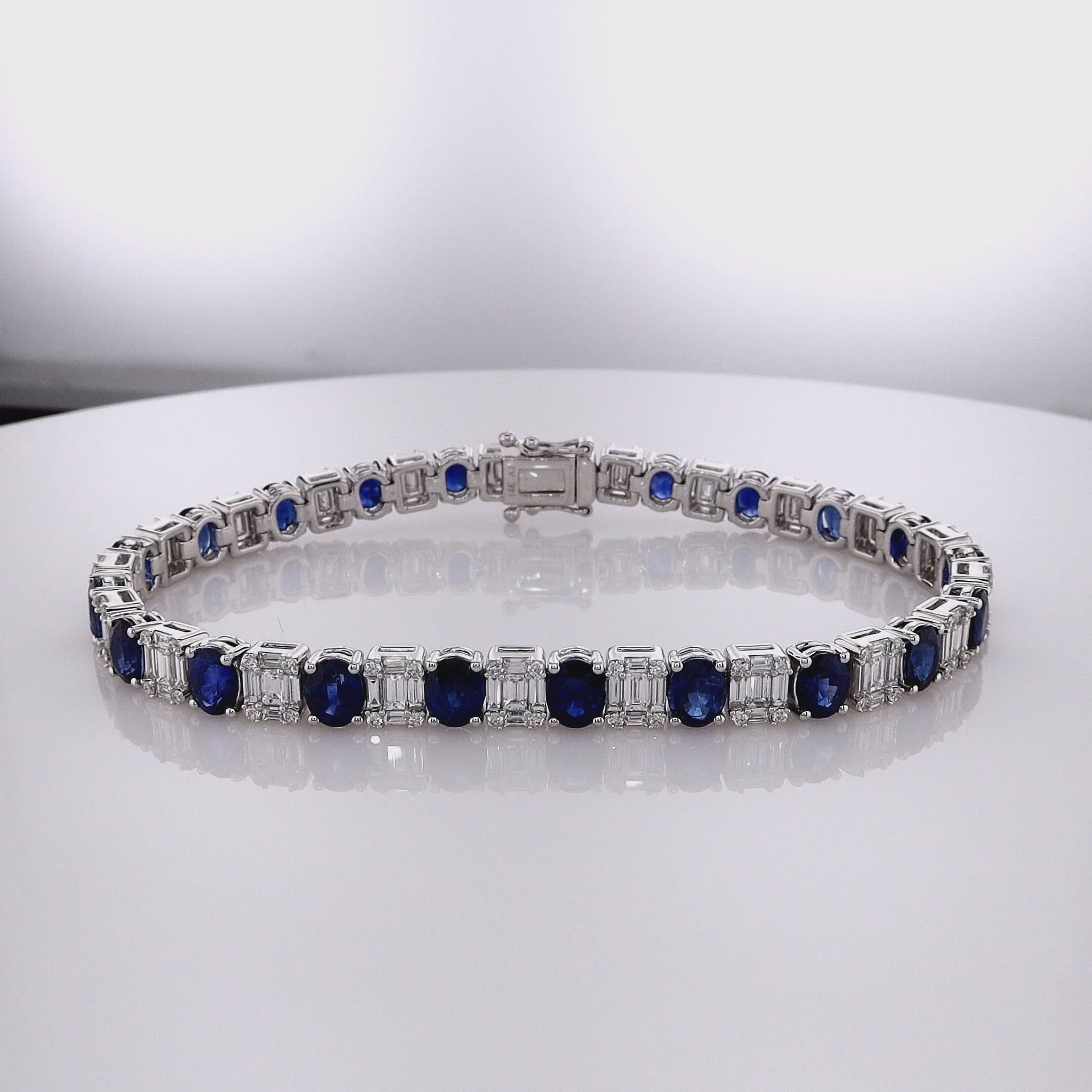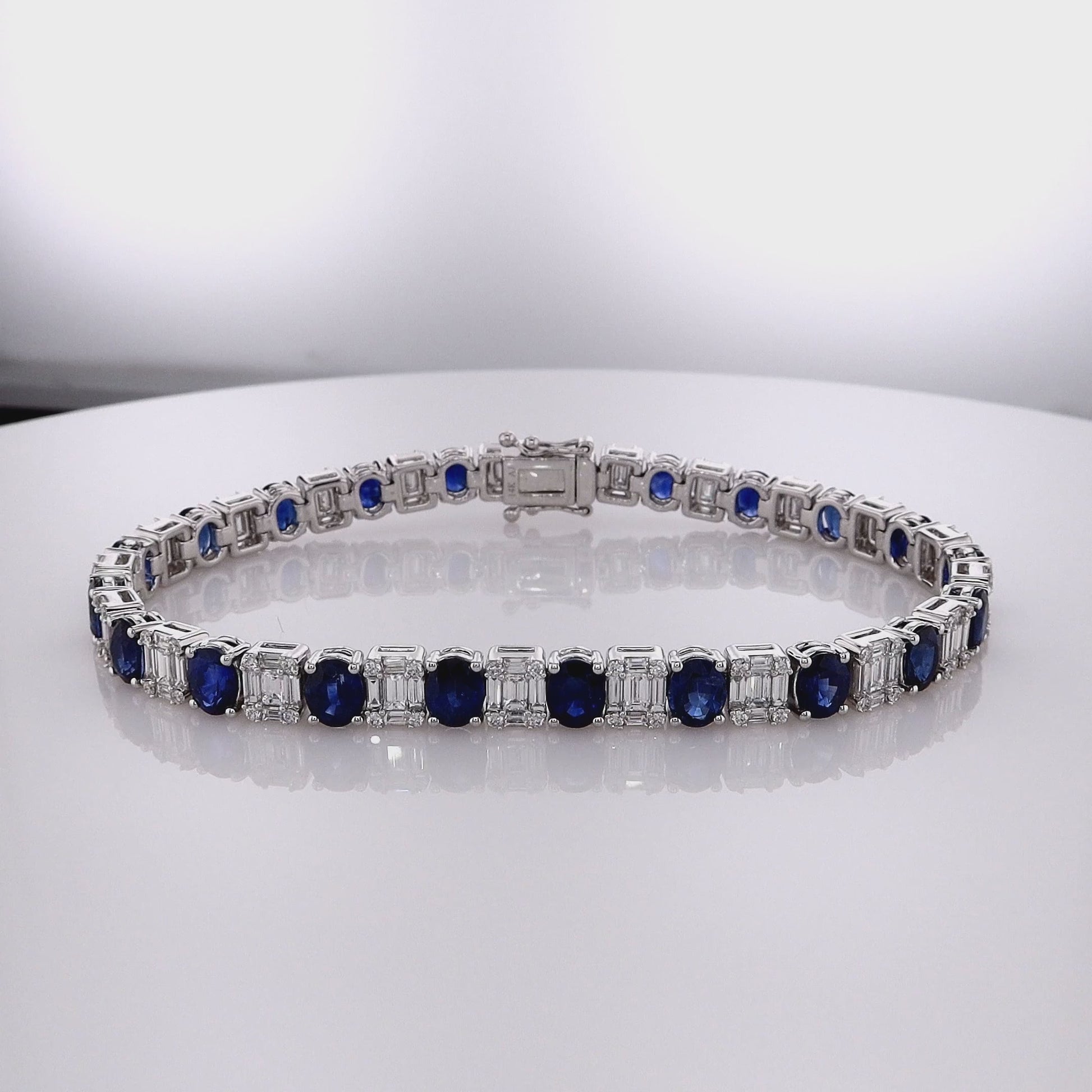 14k White Gold 7" Alternating Oval Sapphire and Diamond Bracelet