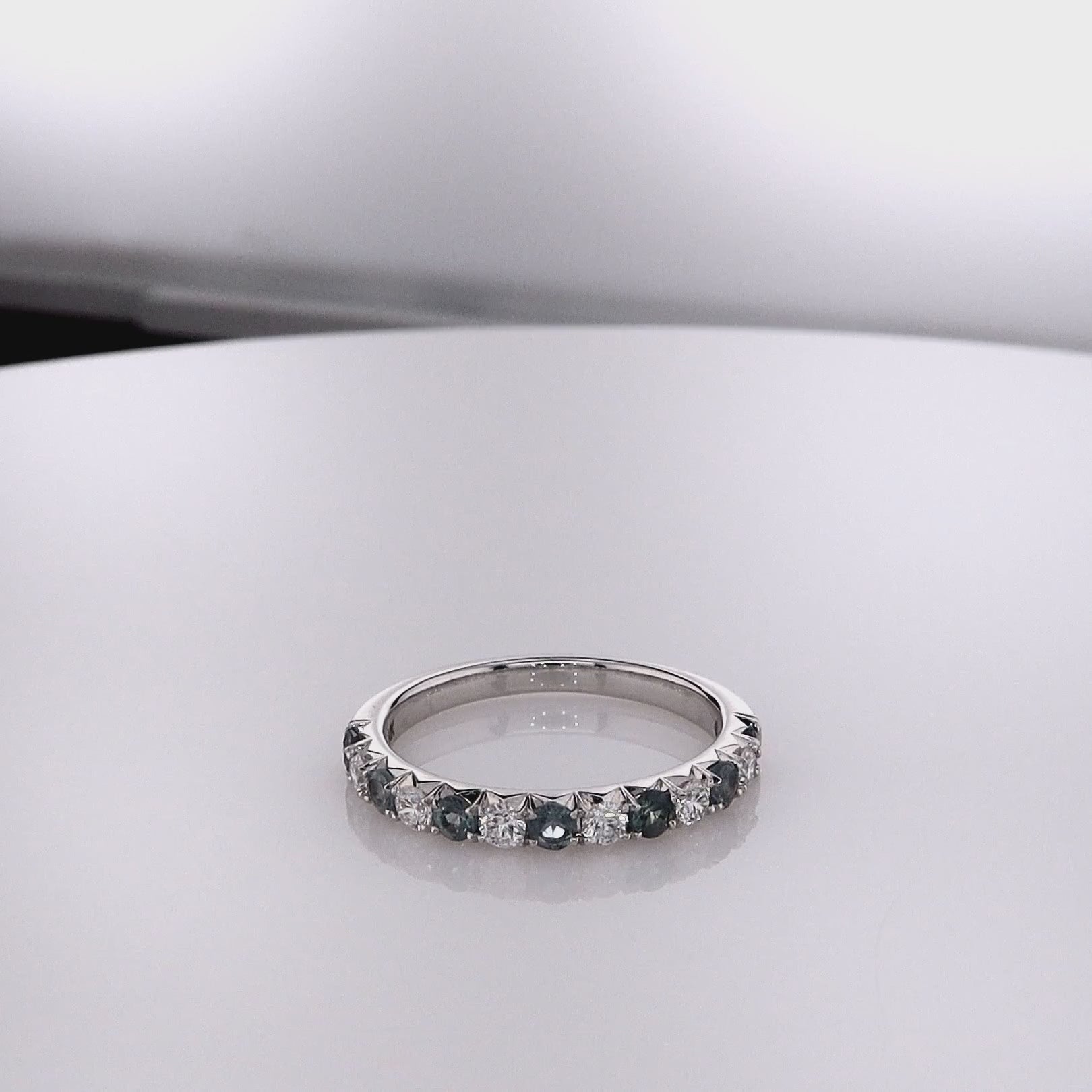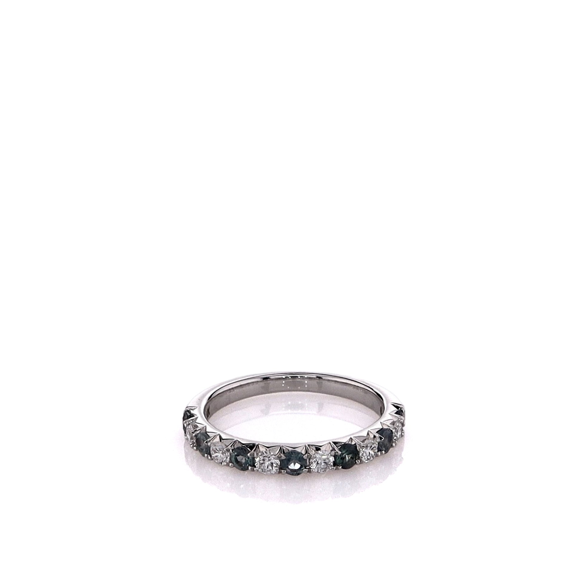 14k White Gold Alternating Alexandrite and Diamond Half Way Band