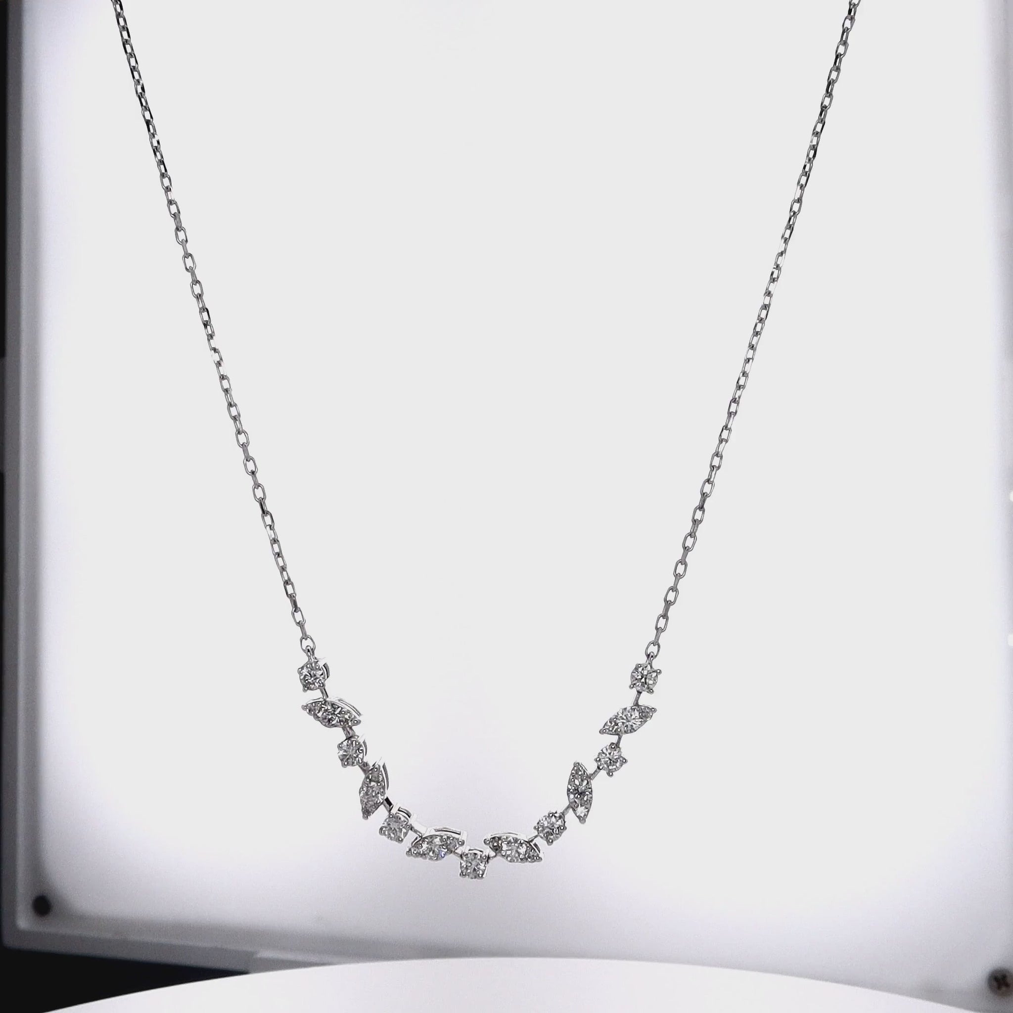 14k White Gold Alternating Marquise and Round Shape Diamond Necklace
