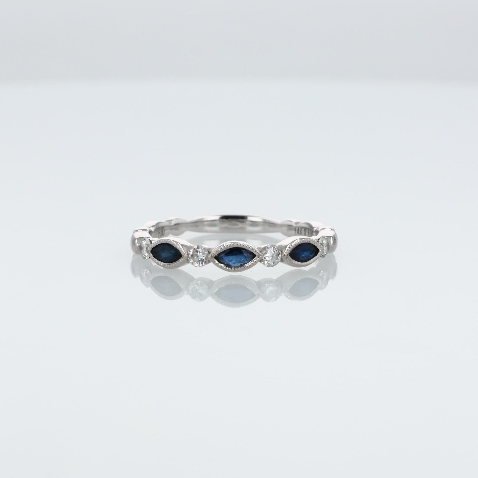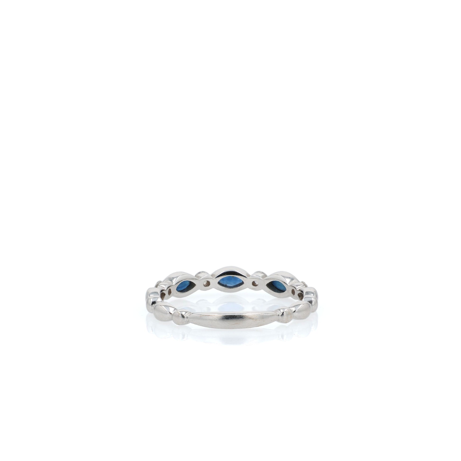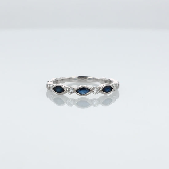 14k White Gold Alternating Marquise Sapphire and Diamond Wedding Band