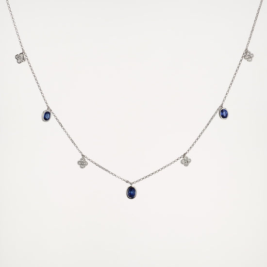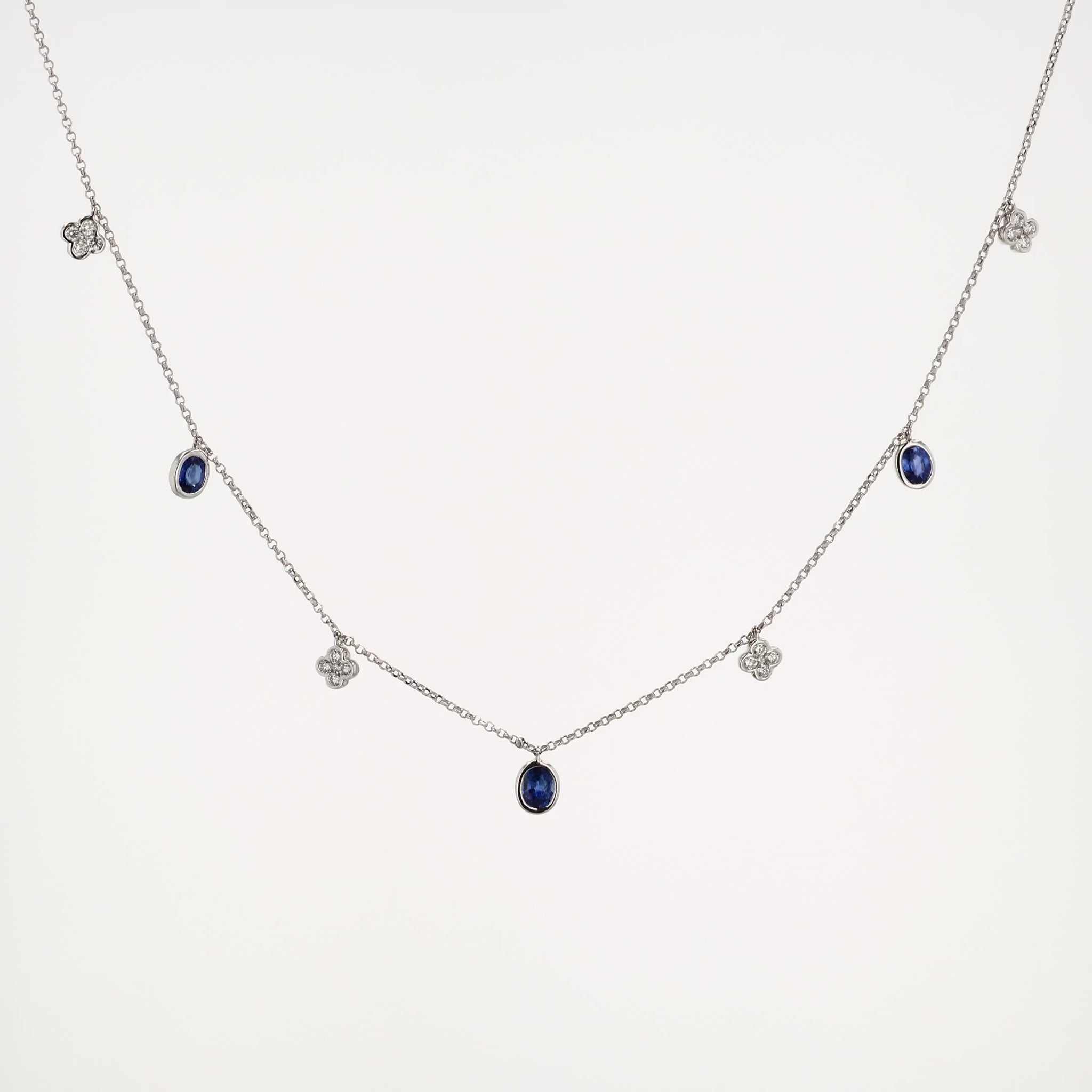 14k White Gold Alternating Sapphire and Diamond Bezel Station Necklace
