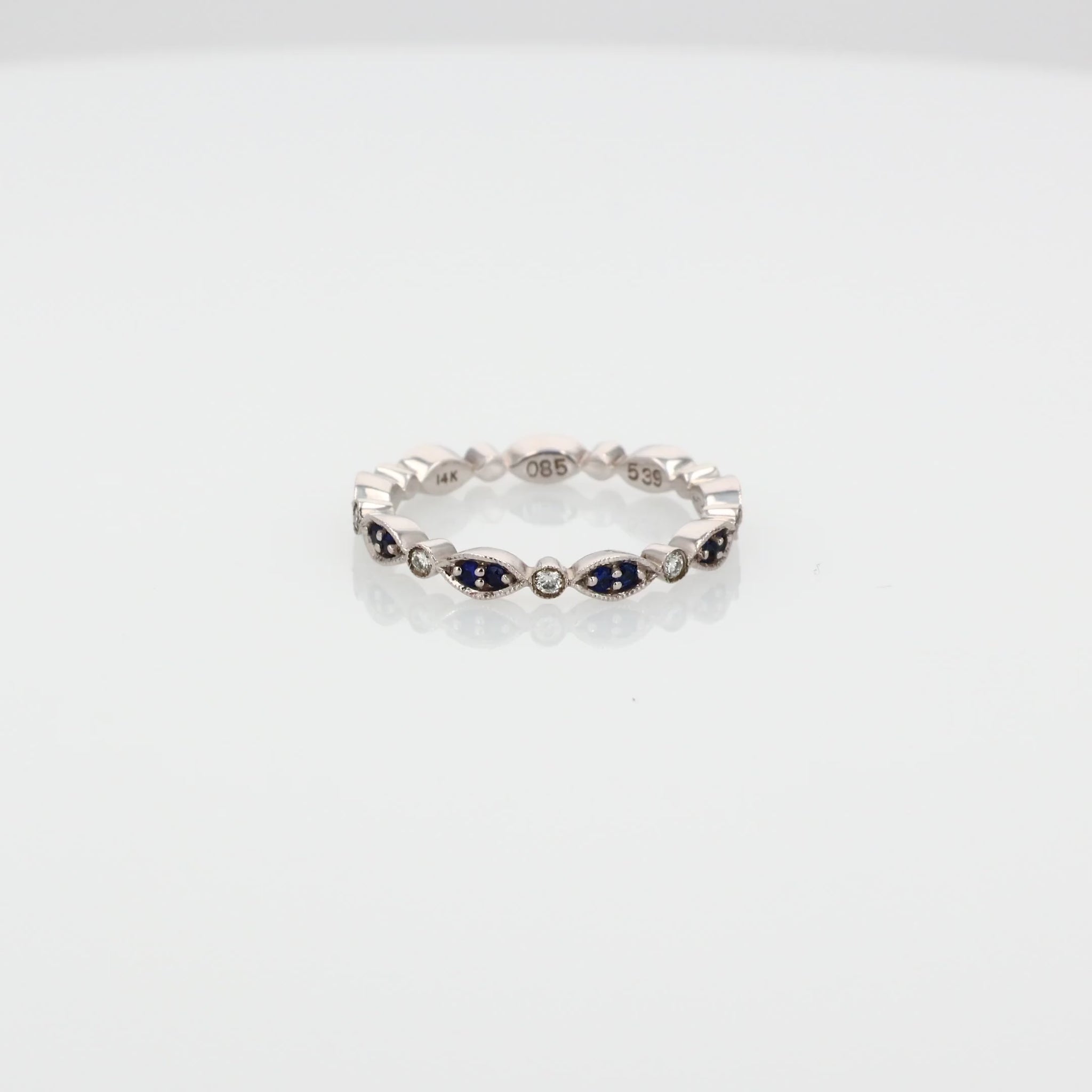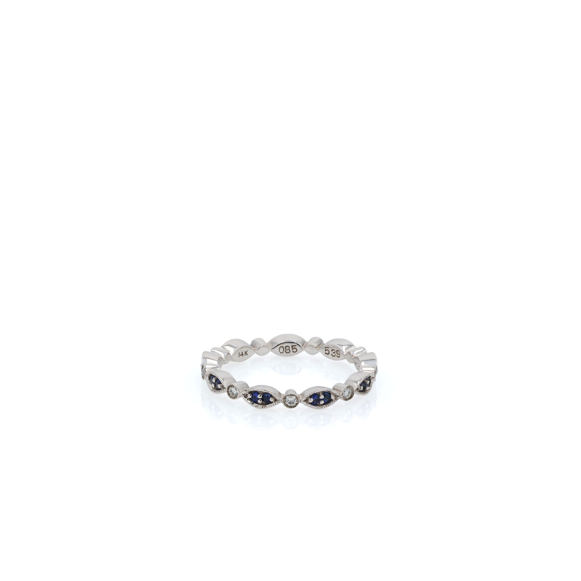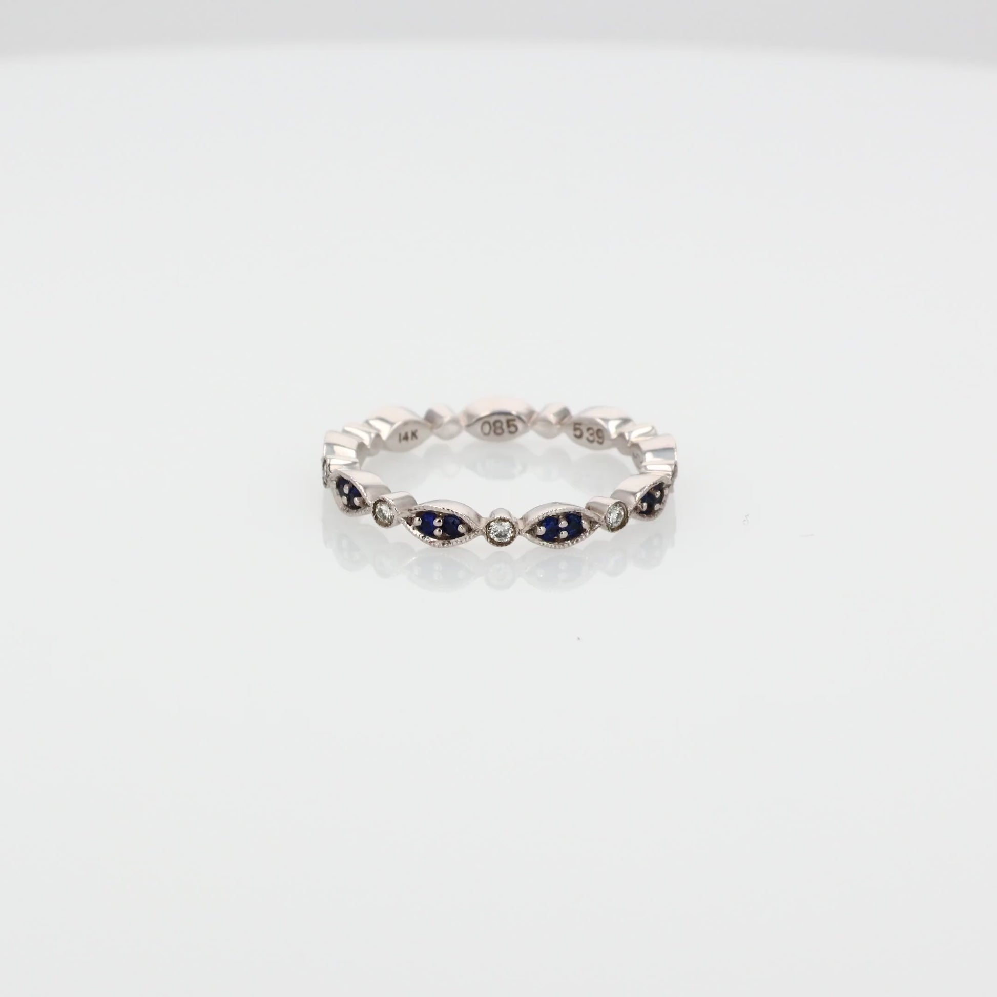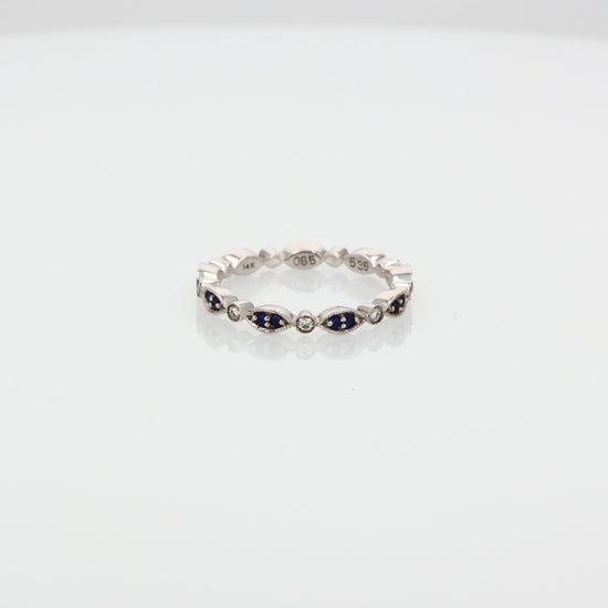 14k White Gold Alternating Sapphire and Diamond Navette Eternity Band