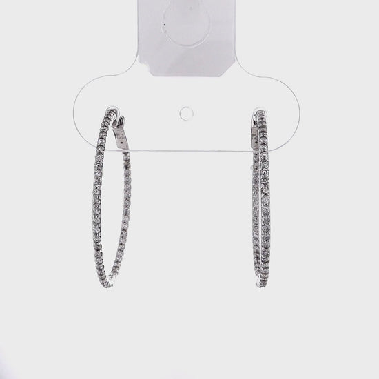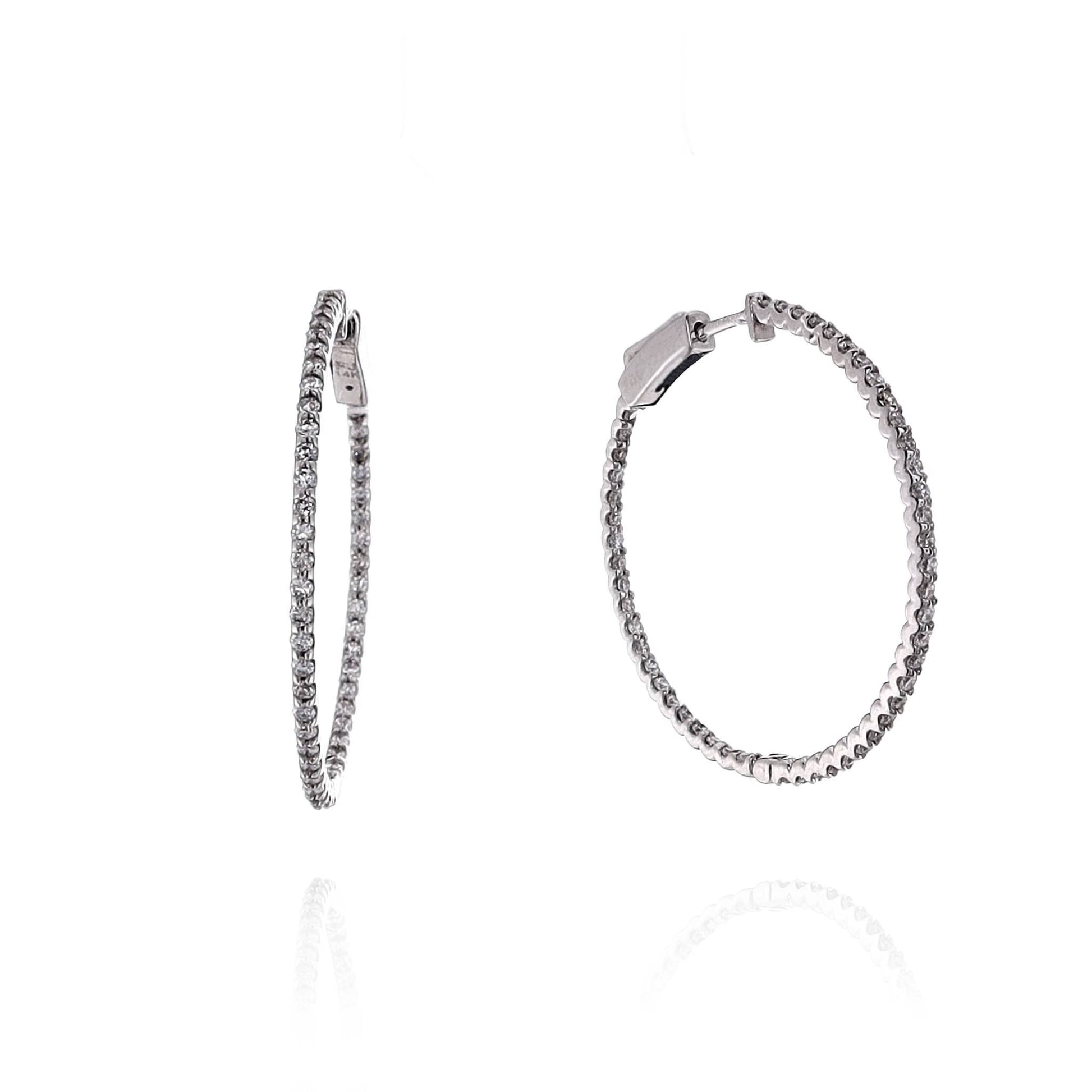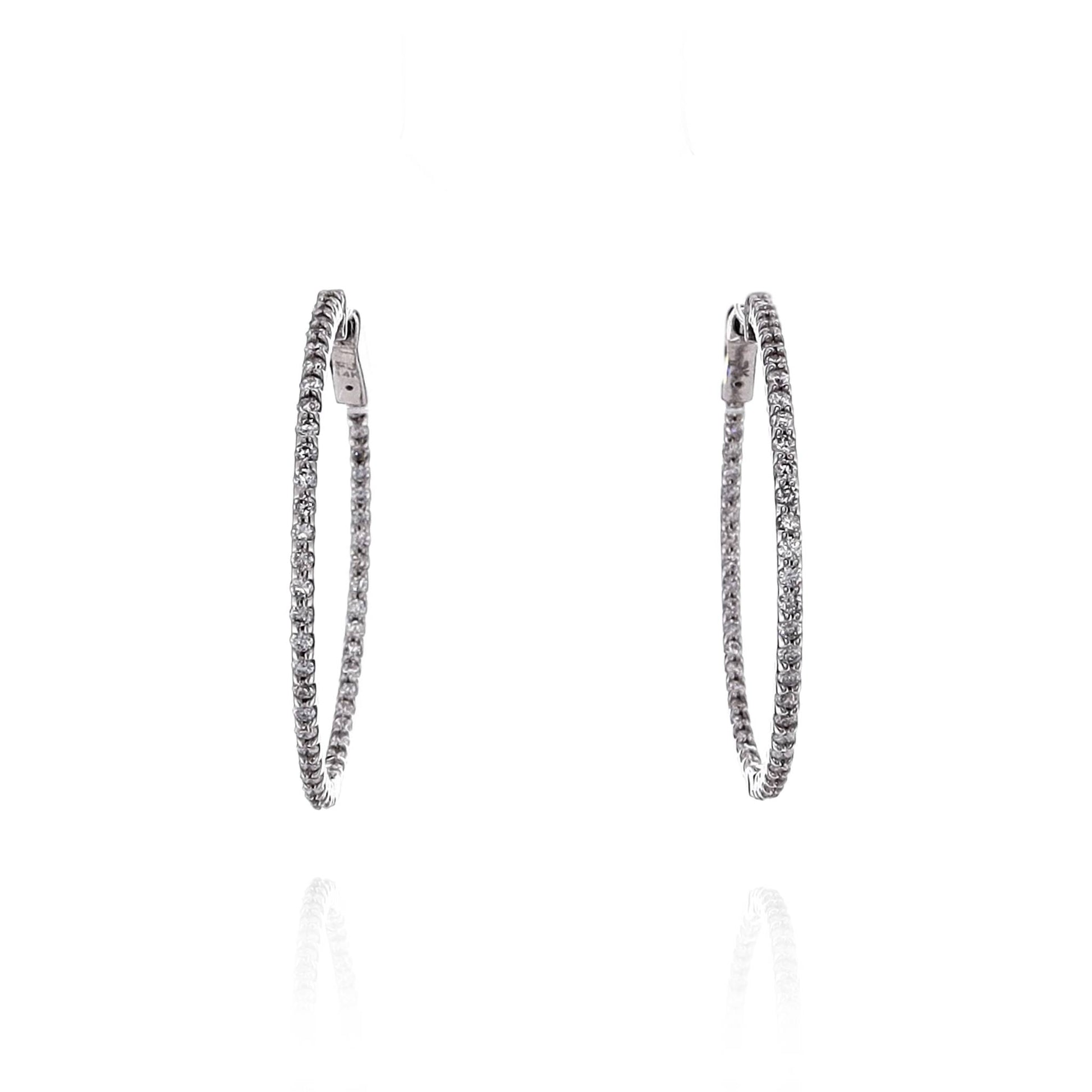 14k White Gold In and Out U-Prong Diamond Hoop Earrings