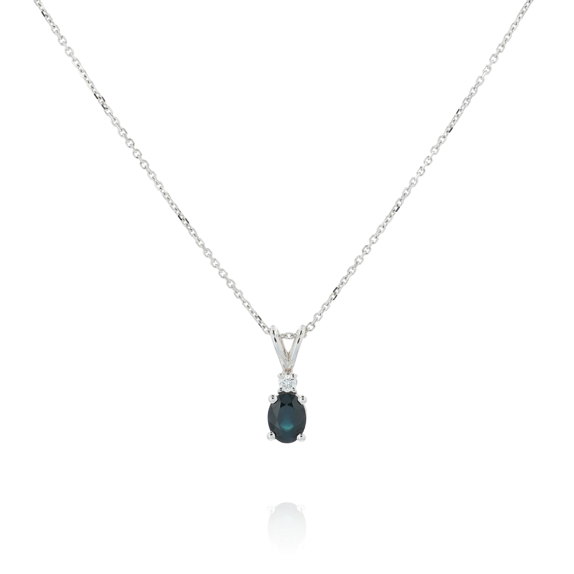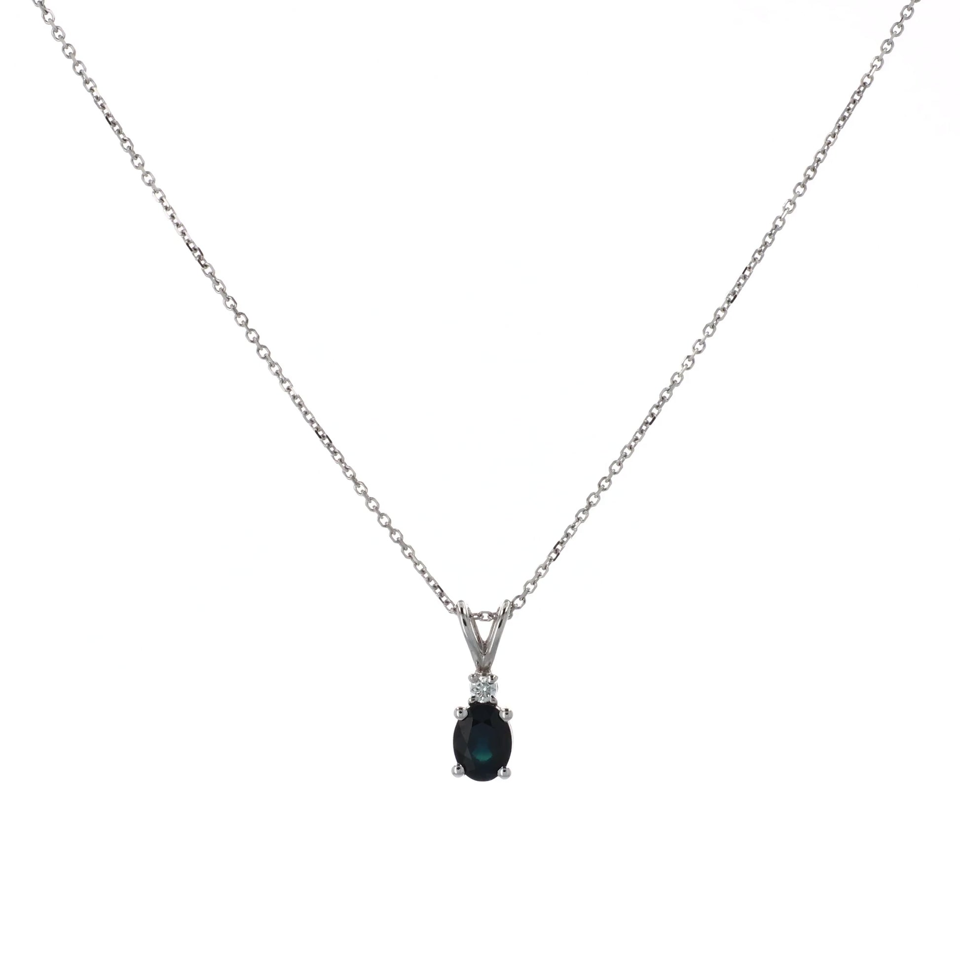 14k White Gold Oval Blue Sapphire and Diamond Pendant Necklace