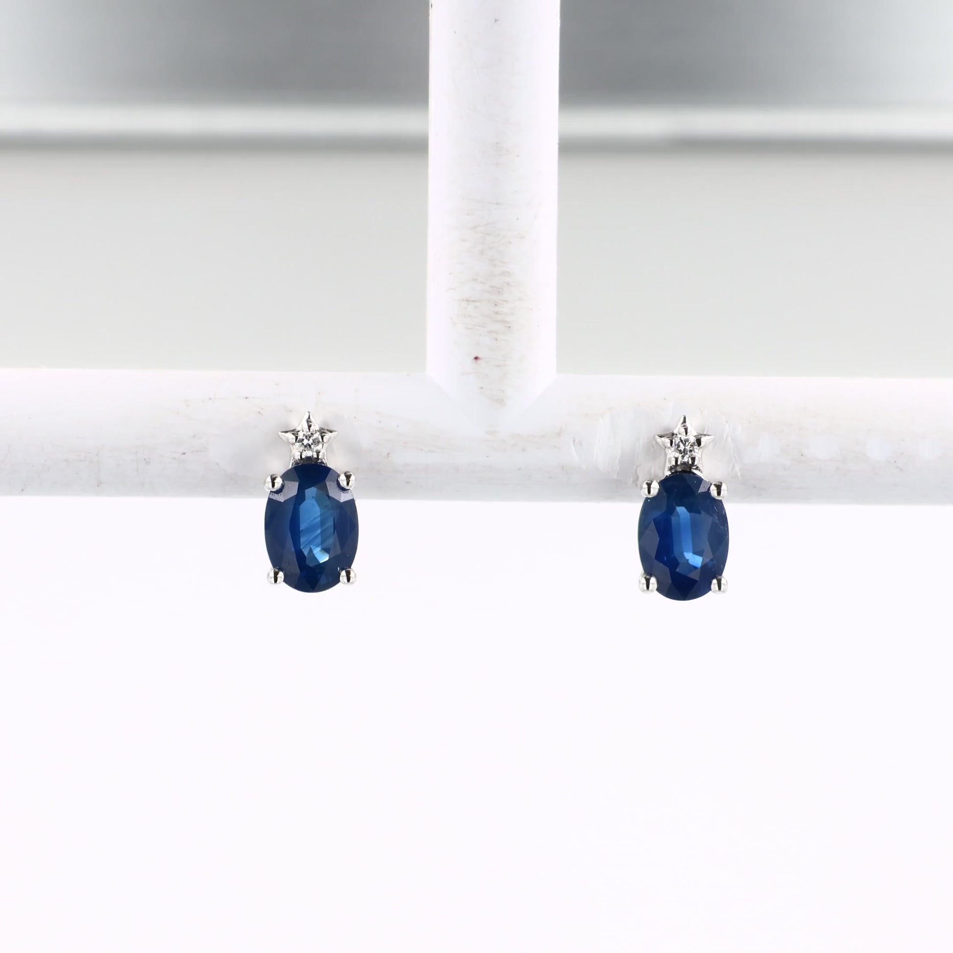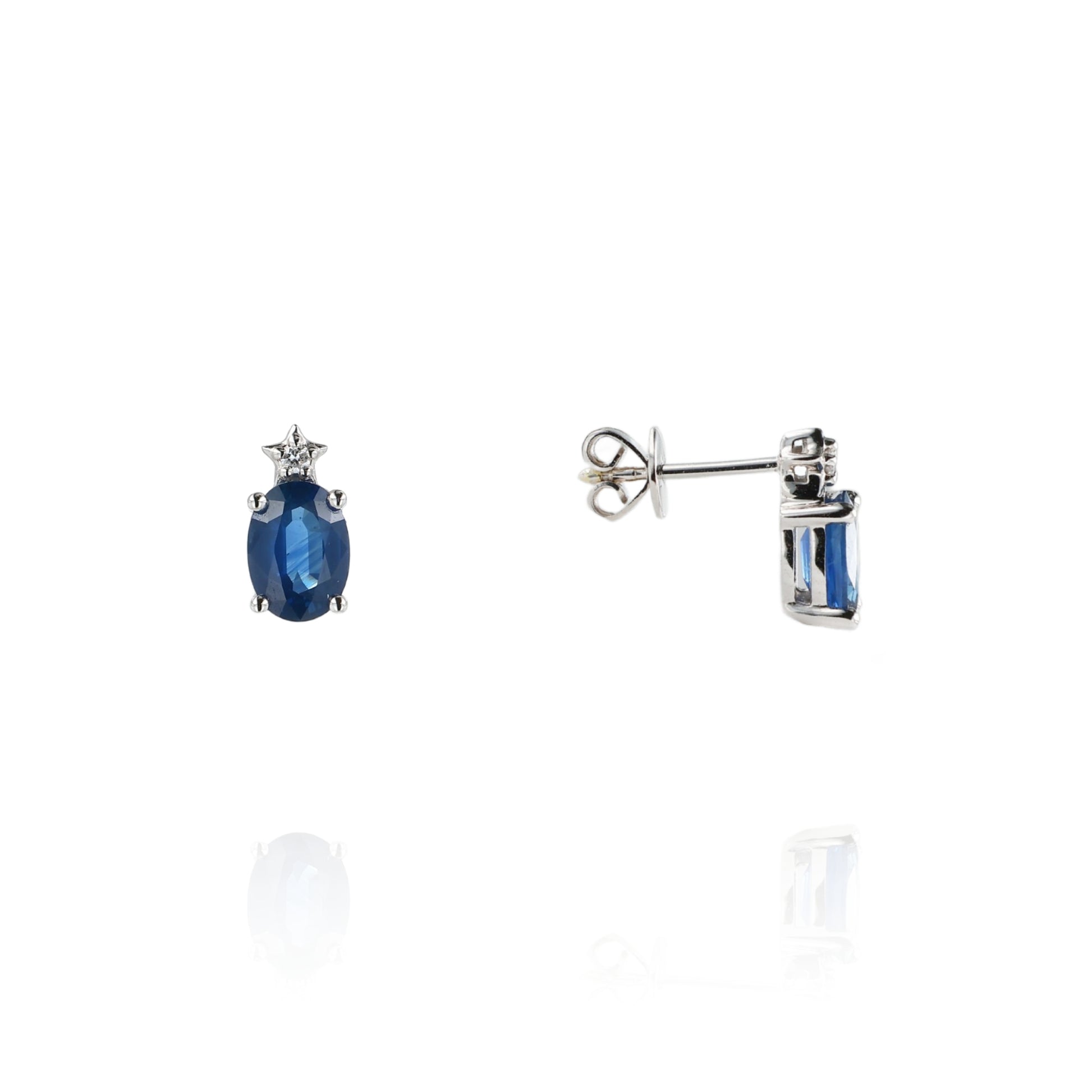 14k White Gold Oval Blue Sapphire and Diamond Stud Earrings
