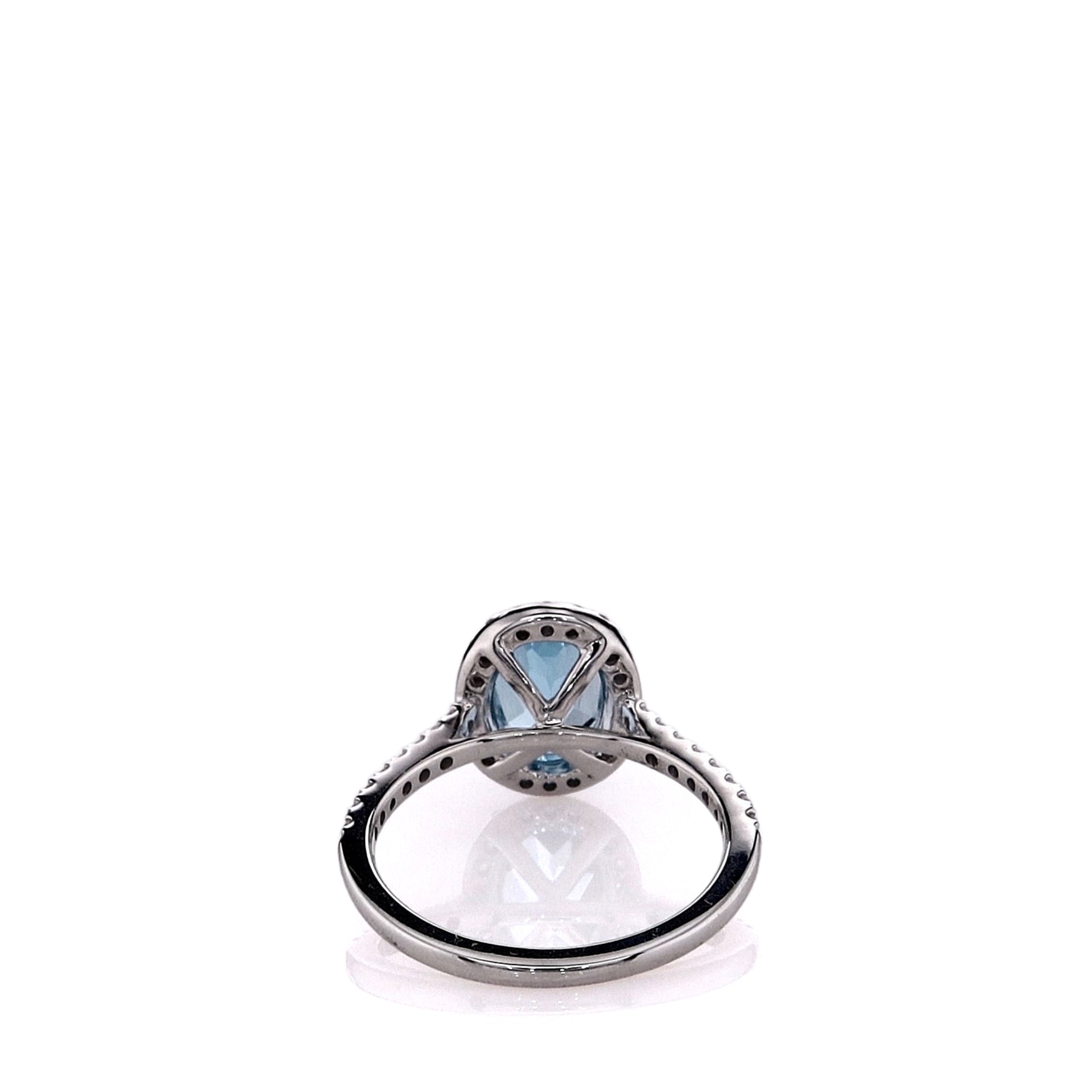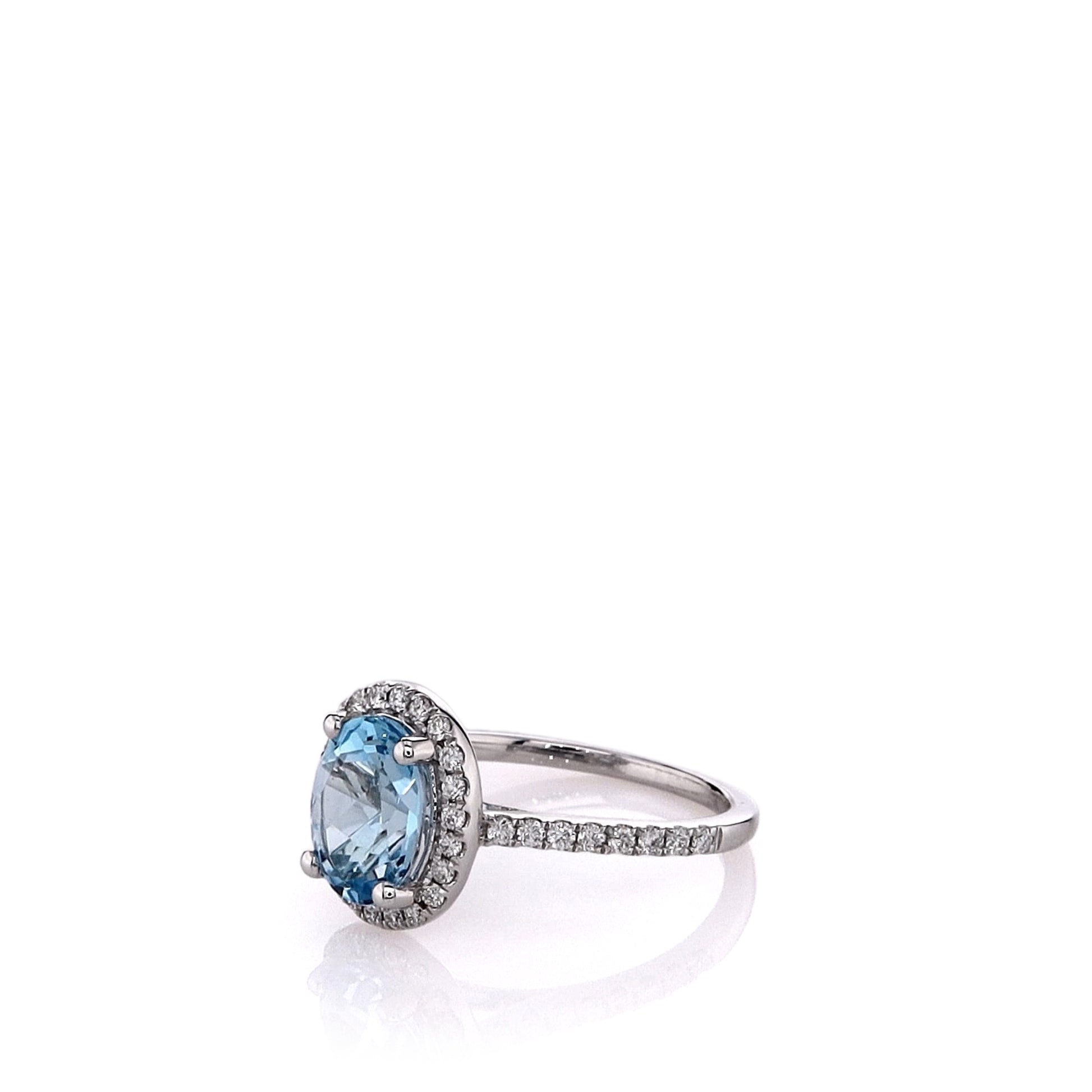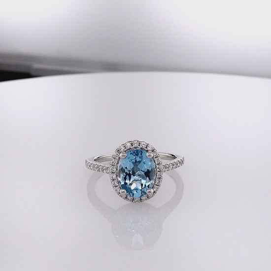 14k White Gold Oval Blue Topaz and Diamond Halo Ring