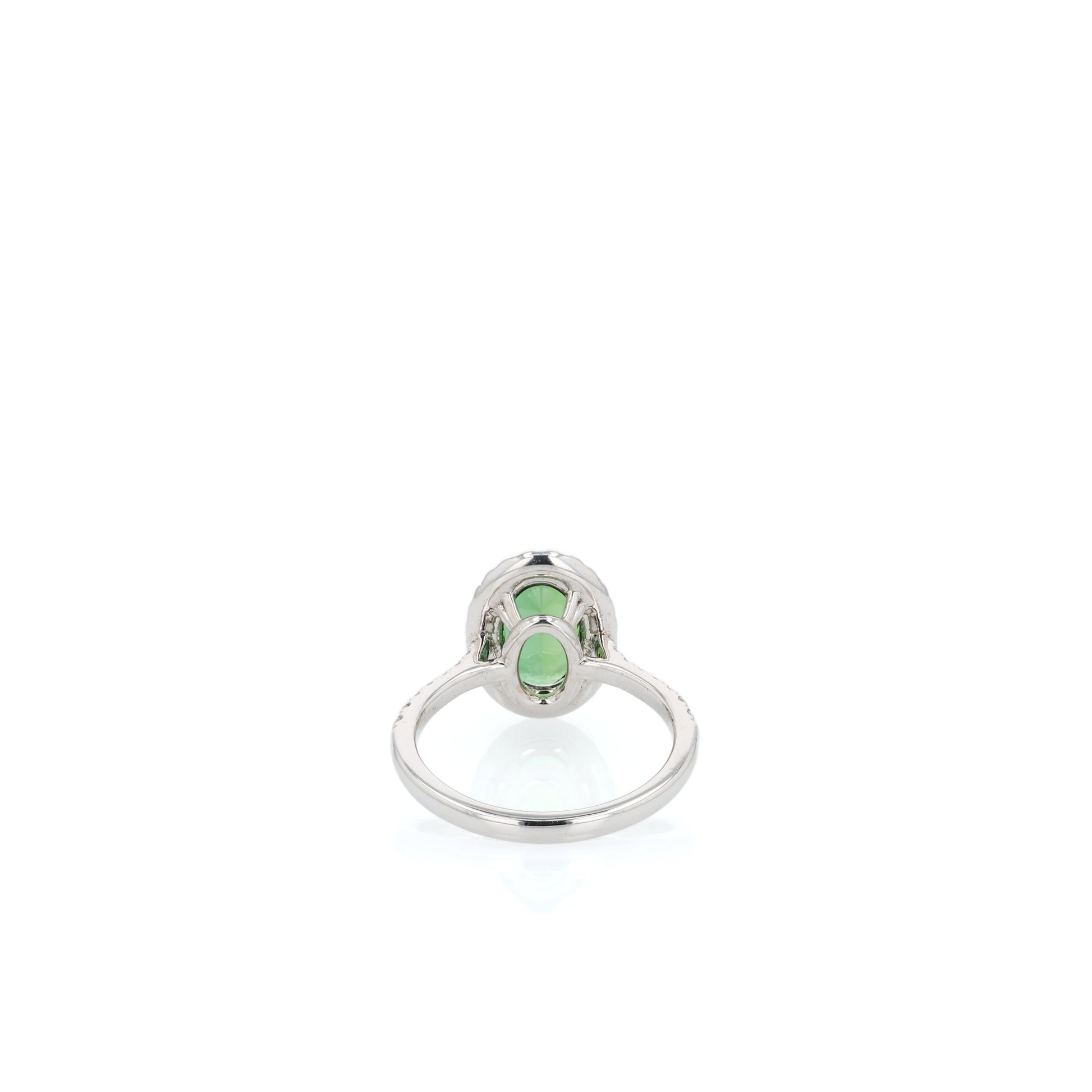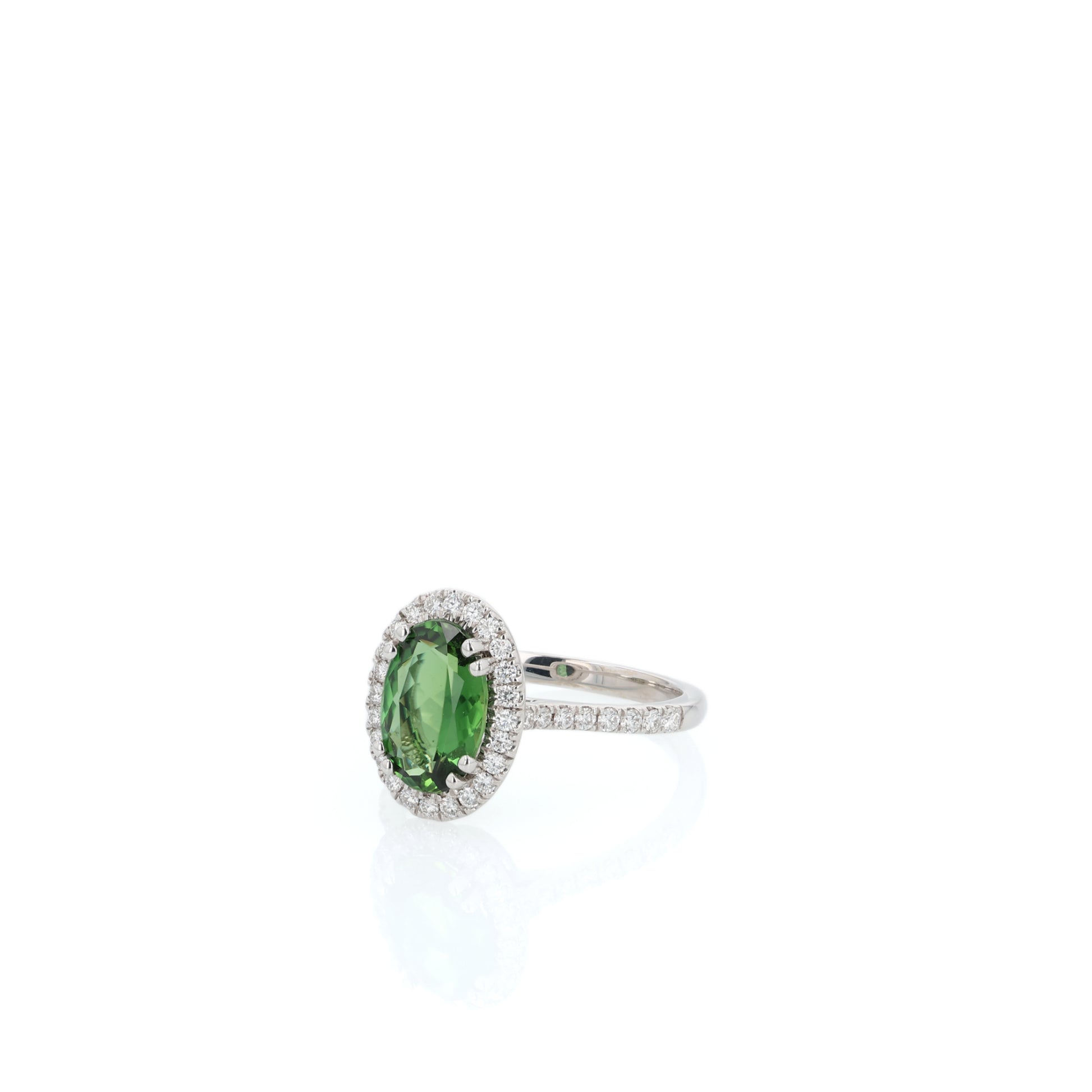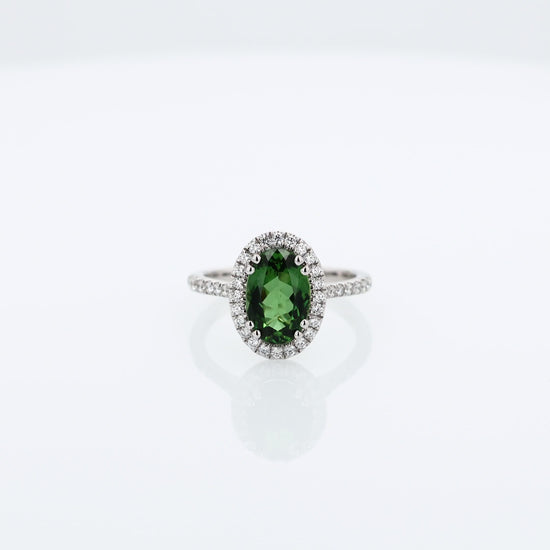 14k White Gold Oval Chrome Tourmaline and Diamond Halo Ring