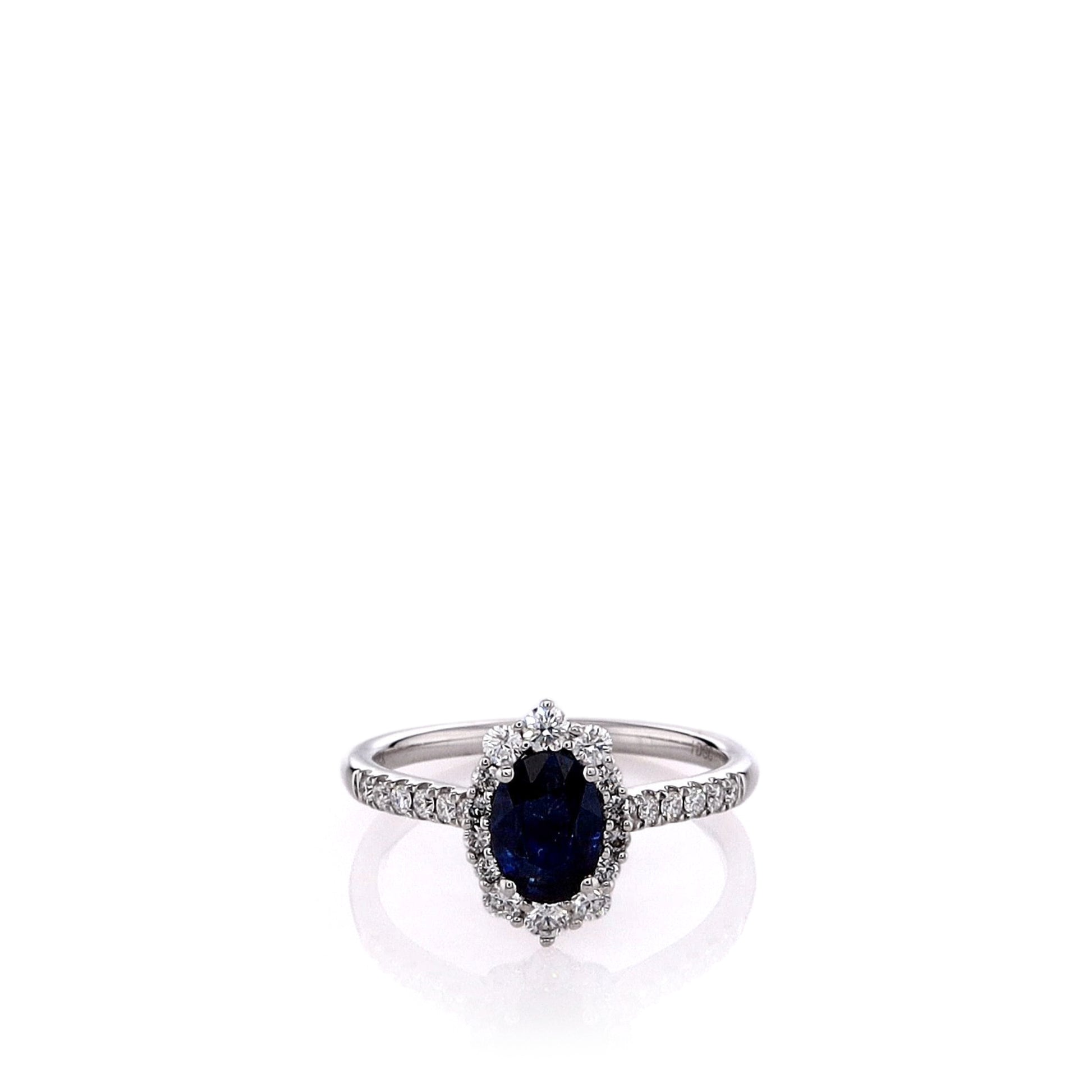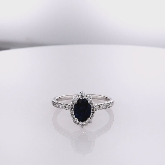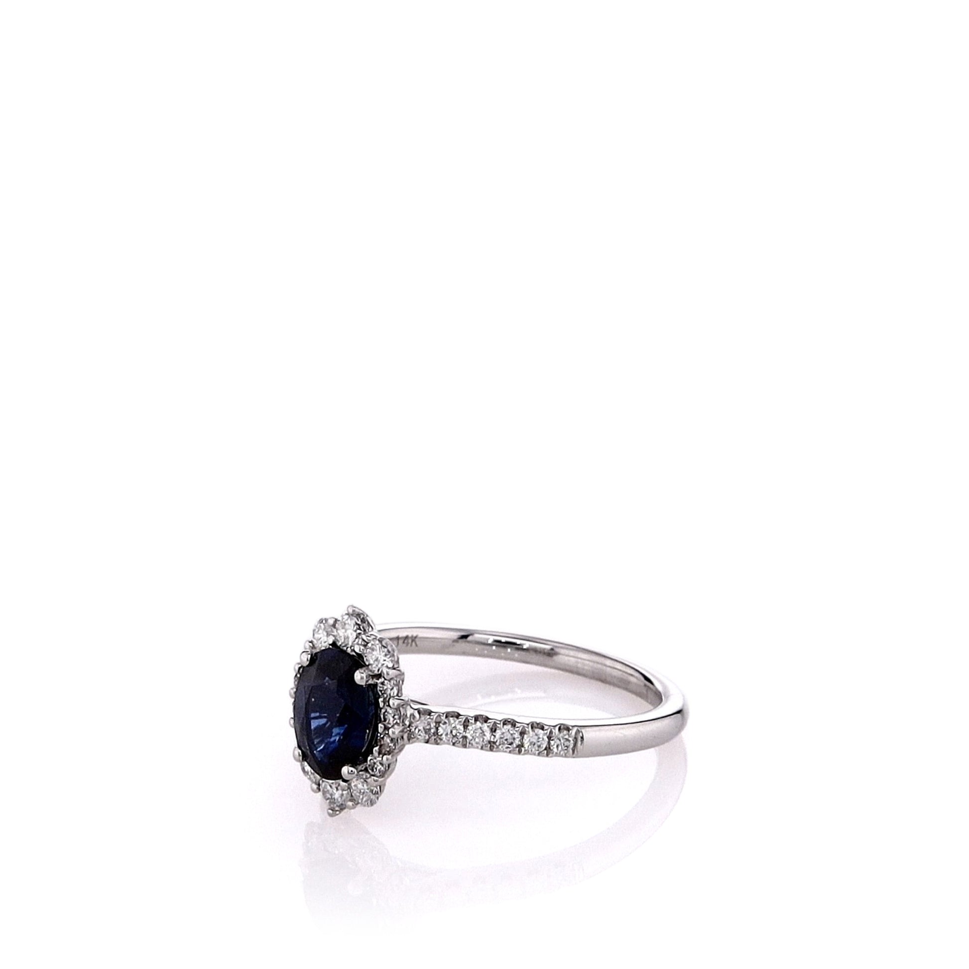 14k White Gold Oval Sapphire and Diamond Halo Ring