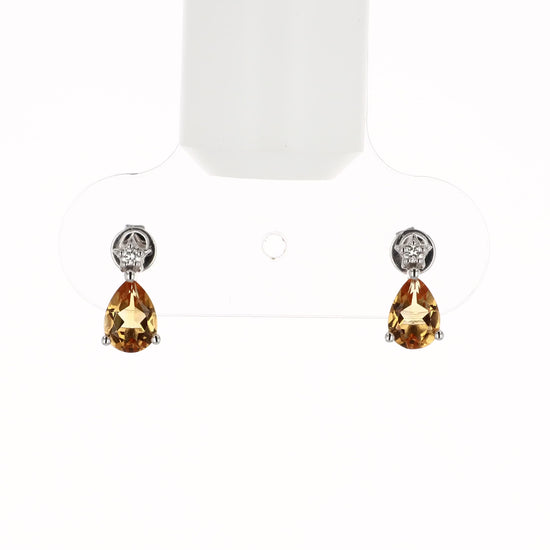 14k White Gold Pear Shape Citrine and Diamond Drop Earrings