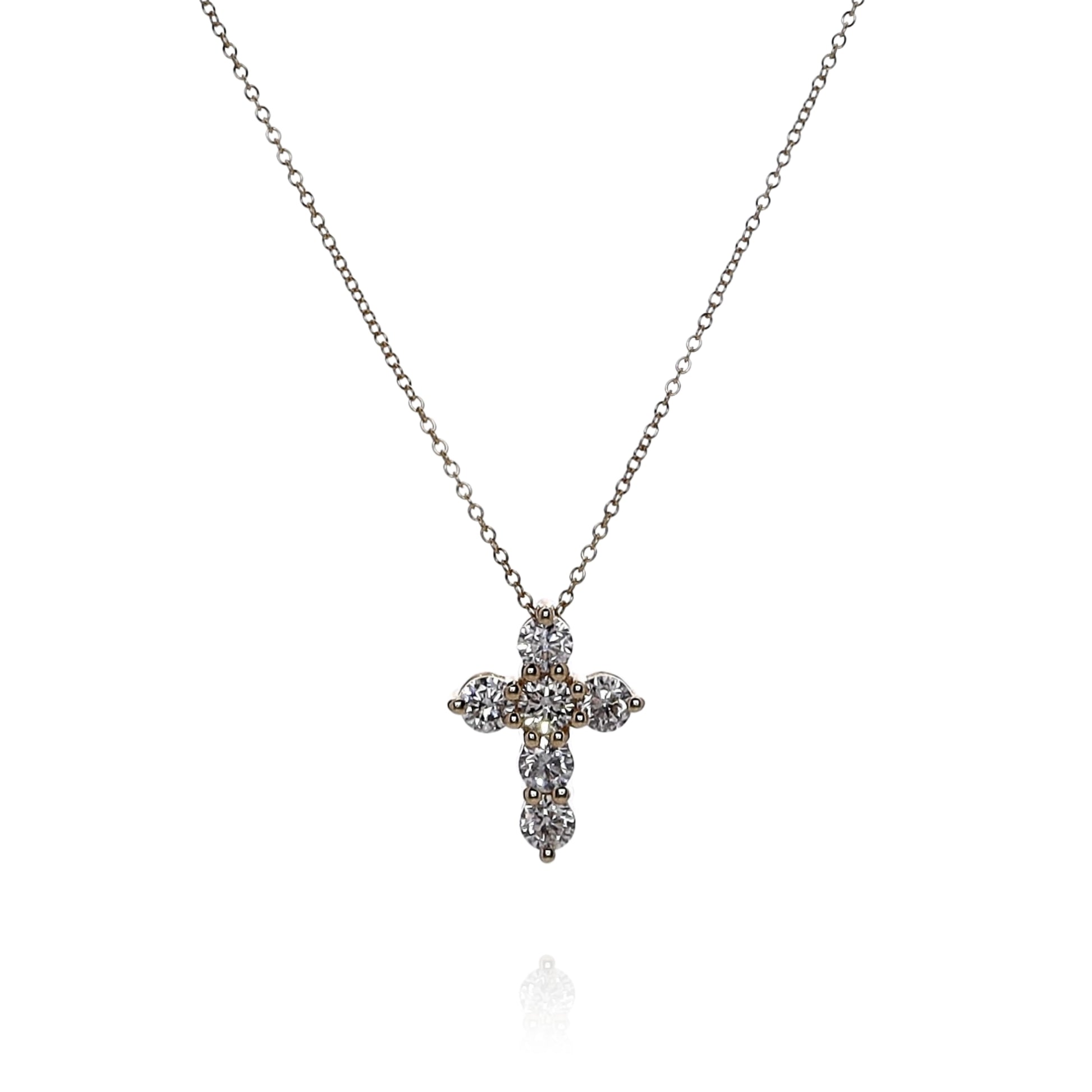 14k Yellow Gold Diamond Cross Pendant Necklace